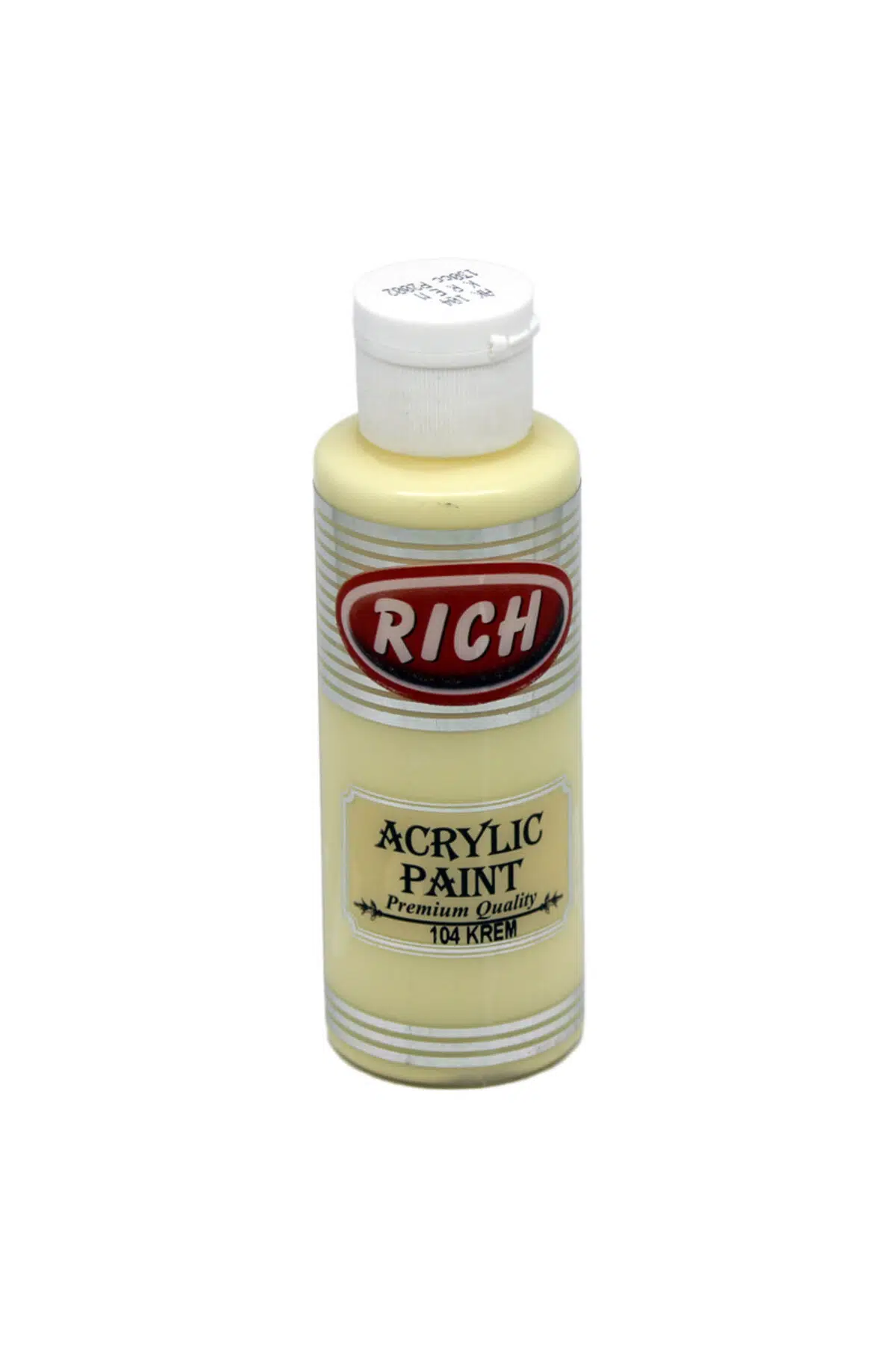 Rich Akrilik Boya 120 cc Krem 104 Dekorasyon ve sanatsal hobi çalışmalarında kullanılan boyalardır.; Su ile kolayca inceltilebilir.; Temizlemesi kolay.; Çabuk kuruma süresi ile pratik kullanıcı deneyimi.; Renkler birbiri ile kolayca karıştırılabilir.; Ahşap, cam, seramik, tuval ve polyester gibi farklı yüzeylerde rahatlıkla kullanılabilir.; Hobi meraklılarının sıklıkla karşılaştığı renklendirme sorunu Rich akrilik boya ile çözülüyor.; “Tamam da, Rich akrilik boya ile ne boyanır ?” sorusunu sorduğunuzu duyar gibiyiz ve bunun cevabı çok basit; “HER ŞEY!”.; Rich akrilik boya ile aklınıza gelebilecek her yüzeyi boyayabilir, istediğiniz rengi seçerek zengin renk kataloğundan faydalanabilirsiniz.; Bidoluhobi portföyündeki Rich akrilik boya renk kataloğuna bakıp, beğendiğiniz renkleri seçerek dilediğiniz kadar sipariş verebilirsiniz.; Hatta ve hatta, bir renkle yetinmeyip kendinize Rich akrilik boya seti bile oluşturabilirsiniz ve istediğiniz her yüzeyi sıkıntı yaşamadan boyamanın rahatlığına varabilirsiniz.; Sanat icra edenlerin de sıklıkla kullandığı akrilik boyayı, her yüzeyi kolaylıkla boyarken kullanabileceğiniz gibi, amatör veya profesyonel resim yapmak için de kullanabilirsiniz.; Özellikle amatör olarak resim yapan veya her düzeydeki resim kursu öğrencileri için vazgeçilmez olan kaliteli akrilik boya, yaratım sürecinize kesinlikle kolaylık sağlayacaktır.; En uygun akrilik boya çeşitli renk seçeneklerine bidoluhobi mağazamızdan ulaşabilirsiniz.; AKRİLİK BOYA NEDİR VE NASIL KULLANILIR? Akrilik boya, hammaddesi elyaf olan, başta da belirttiğimiz gibi özellikle hobi meraklılarının renklendirme konusunda hayatını kurtaran, asla koku yapmayan ve kolay uygulanabilir olması sebebiyle sıklıkla tercih edilen bir boya türüdür.; Kolay kuruyan akrilik boya ile istediğiniz ürünü boyayıp vakit kaybetmeden kullanmaya başlayabilirsiniz.; Siparişleriniz bidoluhobi tarafından özenle hazırlanır ve en kısa sürede ilgili kargo firmasına teslim edilir.