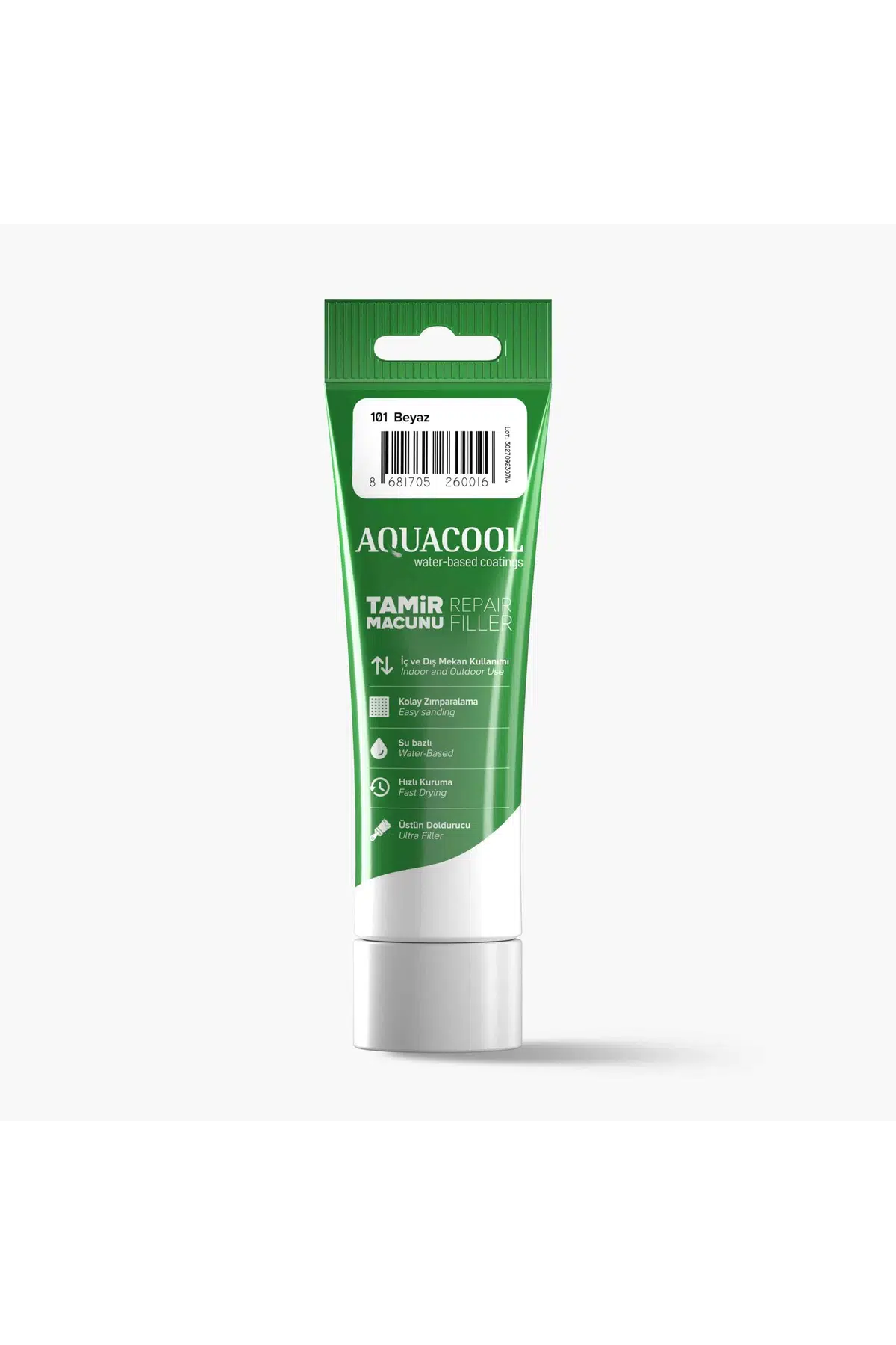 Aquacool Su Bazlı Tamir Macunu Tanım: Yüksek doldurma gücüne sahip tek bileşenli, kullanıma hazır su bazlı tamir macunudur.; Masif ahşap, kaplama ve MDF tamiri için uygundur.; Özellikleri: Yüksek doldurma gücüne sahip, çatlama yapmaz, hem iç hem dış mekanda kullanılır, hızlı kurur, kolay zımpara olur.; Uygulama: İç ve dış mekandaki çatlak ve delikler için kullanılır.; Arızalı bölgeye spatula yardımı ile uygulayın.; 1-2 saat sonra zımpara yapılabilir.; Minimum 3 saat sonra boyanabilir.; Kuruma süresi uygulama kalınlığına ve hava şartlarına göre değişebilir.; Dış mekânda geniş yüzeyi düzeltmek için sıva yaparak kullanmayınız.; Ağzı kapalı ve çocukların ulaşamayacağı yerde saklanmalıdır.; +5 oC nin altında ve +30 oC nin üzerinde depolamayınız.; Uygun saklama koşullarında raf ömrü minimum iki yıldır.