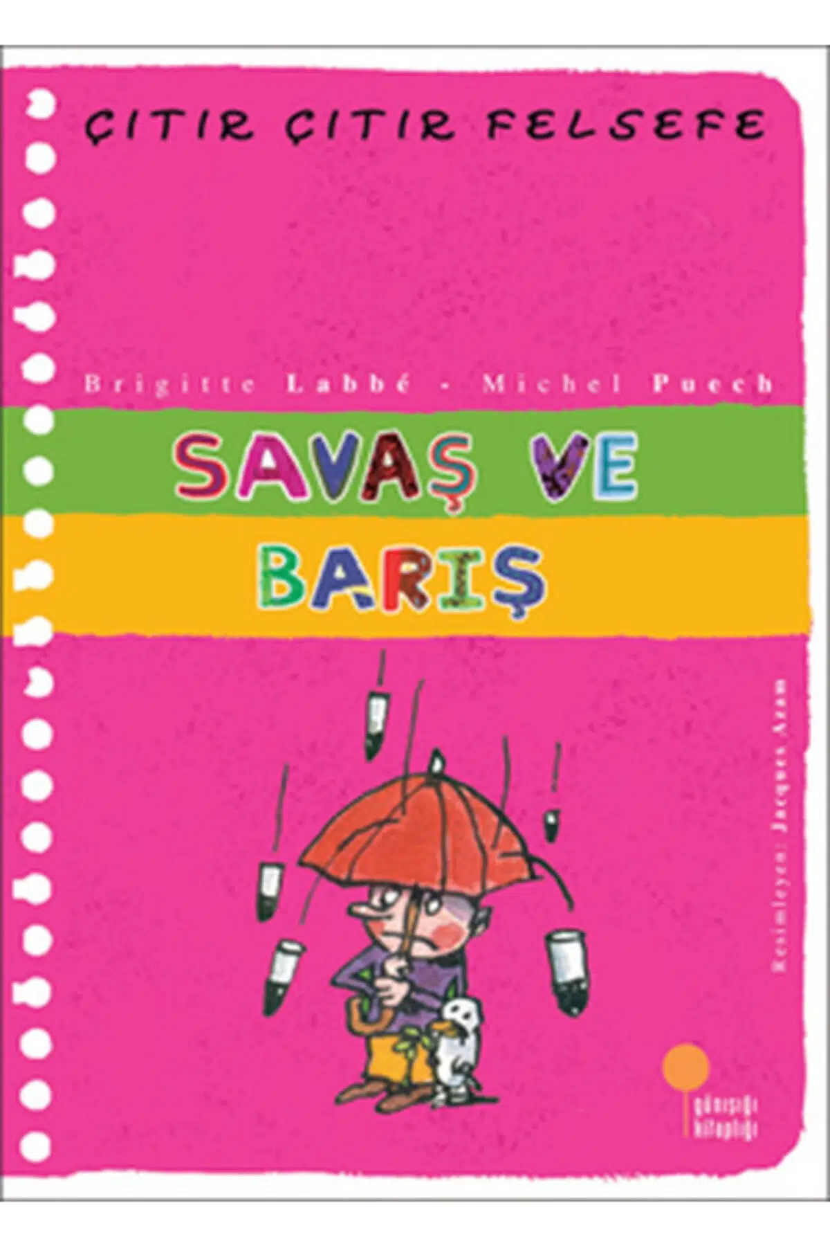 ISBN: 9789756227497; Yazar : Brigitte Labbe; Yayıncı : Günışığı Kitaplığı; Dil : Türkçe; Cilt : Ciltsiz; Özet : Barış doğal değildir, çok çaba gerektirir! Dünya çocukları bu diziyi okuyor! Yaşamı ve dünyanın işleyişini anlamaya çalışan çocuklara temel kavramları, doğru sorular sorarak düşündüren 10 kitaplık dizi, gerçek yaşamdan pek çok renkli örnekle dolu. Çocuklar, öğretmenler ve anne babalar, her kitapta farklı bir kavram üzerine birlikte düşünecek ve konuşacaklar. SINIFLAR: 4-5-6 TEMALAR: DEĞERLERİMİZ, BİREY ve TOPLUM güç kullanmak, kurallar-yasalar, güvenlik gücü, haklara saygı, toplum içinde yaşamak, Birleşmiş Milletler, barışı kurmak. KONU Uzun süre savaş ortamında yaşamamış insanlar, hep birlikte barış içinde yaşamanın doğal olduğuna inanabilirler. Oysa, barışı korumak için, barışın hiç de doğal bir durum olmadığını bilmek ve bunu hiç akıldan çıkarmamak çok önemlidir. Yoksa, onu her an her yerde yeniden kurmak ve savaşın çıkmasını engellemek için çaba göstermeyi unutabiliriz. Barışı kurmak için en doğru anın, hemen şimdi olduğunu da unutabiliriz.