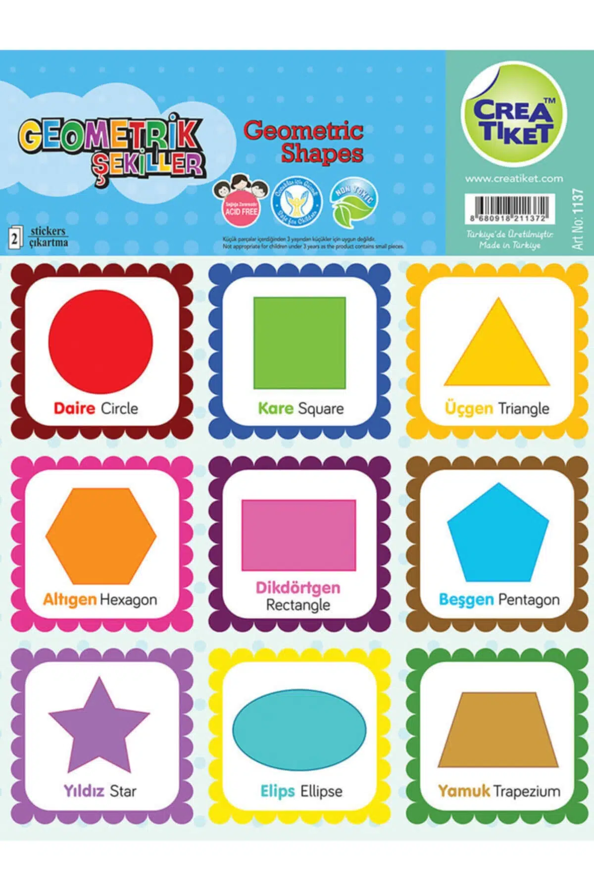 CREA ETİKET Creatiket Eğitici Çıkartma Ingilizce*türkçe