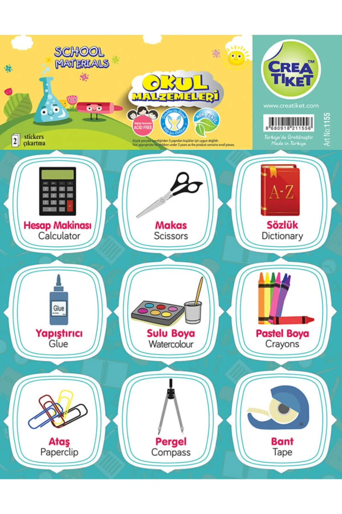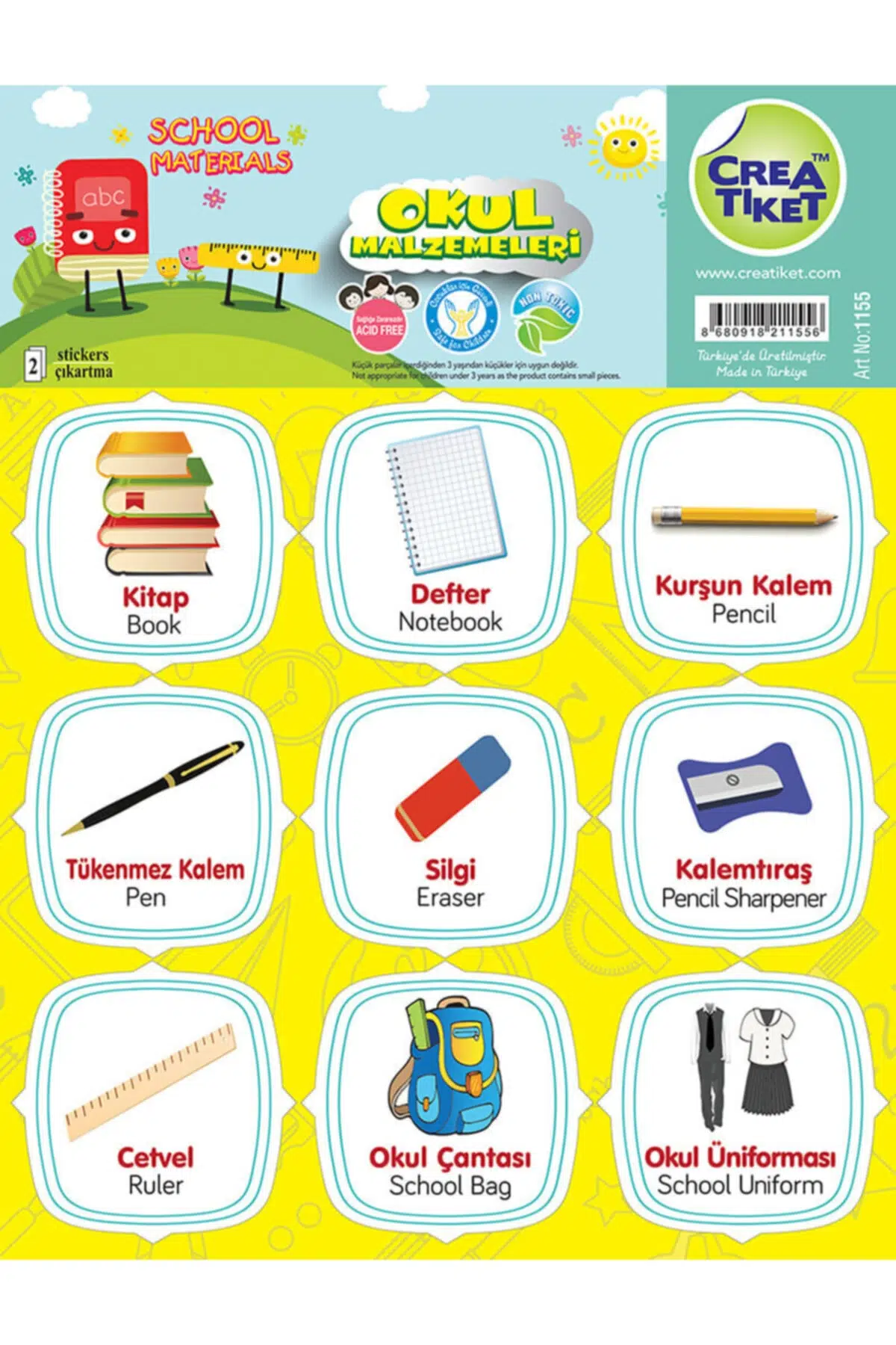 CREATİKET EĞİTİCİ ÇIKARTMA İNGİLİZCE*TÜRKÇE (OKUL MALZEMELERİ)