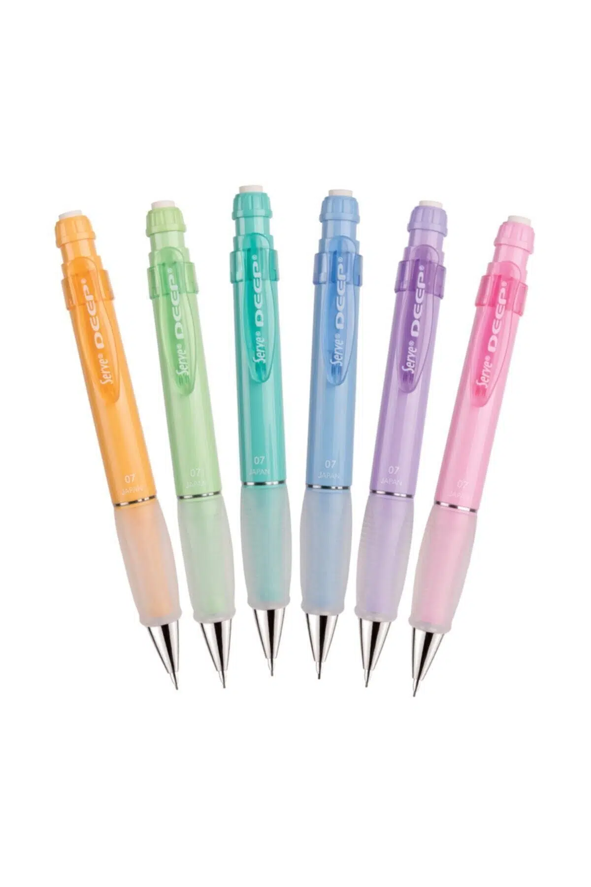 Serve Deep Mekanik Kurşun Kalem - Pastel Renkler - 6lı Set Geniş gövde tasarımlı, yüksek kaliteli mekanik kurşun kalem, pastel renkleriyle Kauçuk grip ile rahat kullanım; Çevirince ortaya çıkan büyük boy kaliteli silgi; Gizlenebilir metal uç ile güvenli k