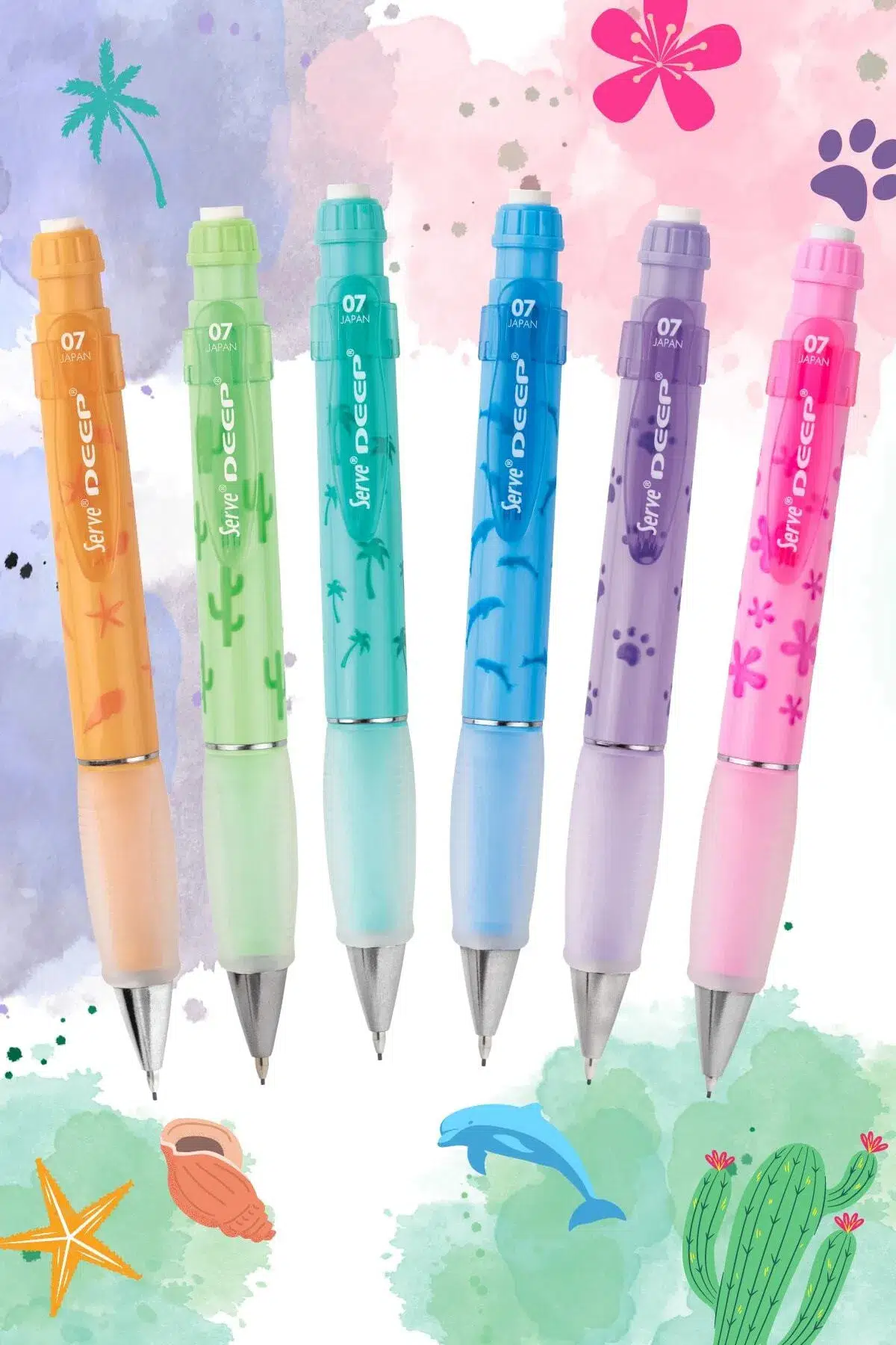 Serve Versatil Kalem Deep 0.7.MM Elma Yesili Kaktus Çevirince ortaya çıkan kaliteli silgi Gizlenebilir metal uç Kauçuk ile rahat kullanım 6 farklı renk seçeneği 0.7 mm uç