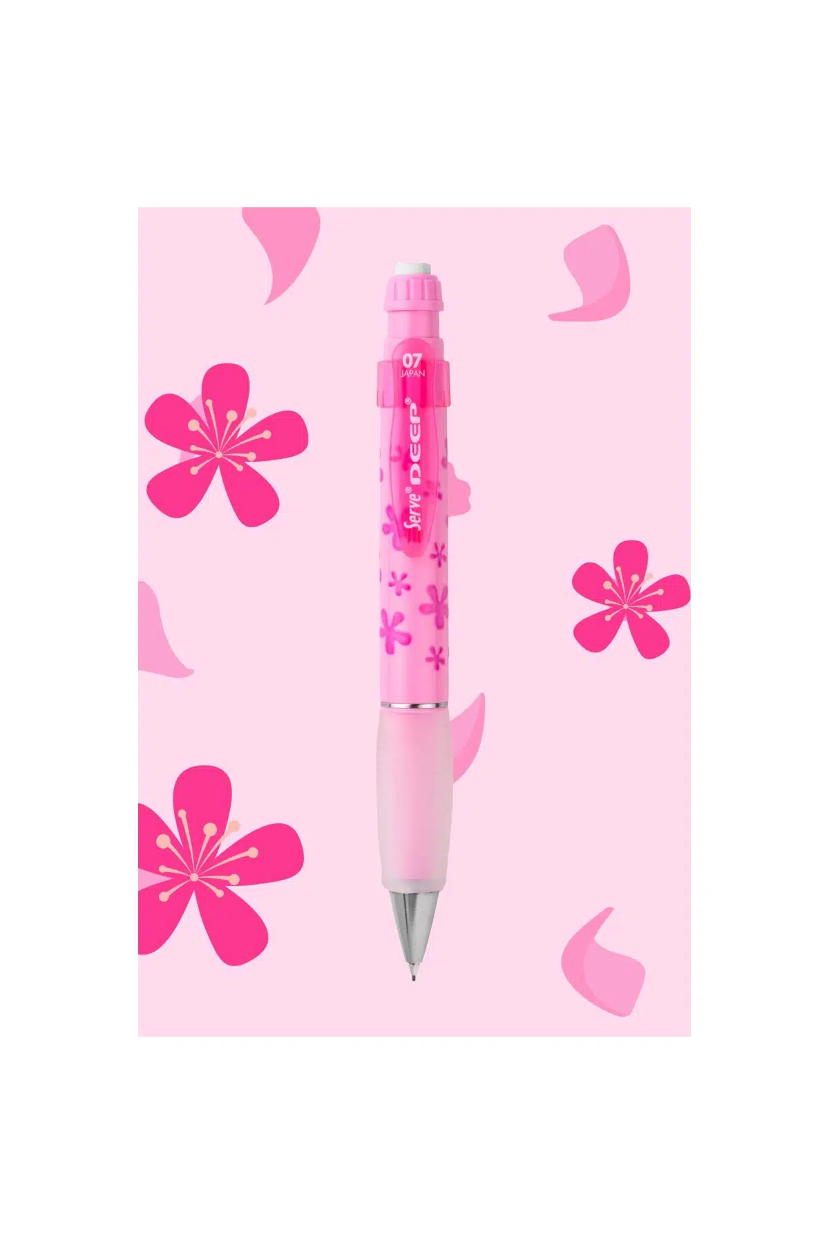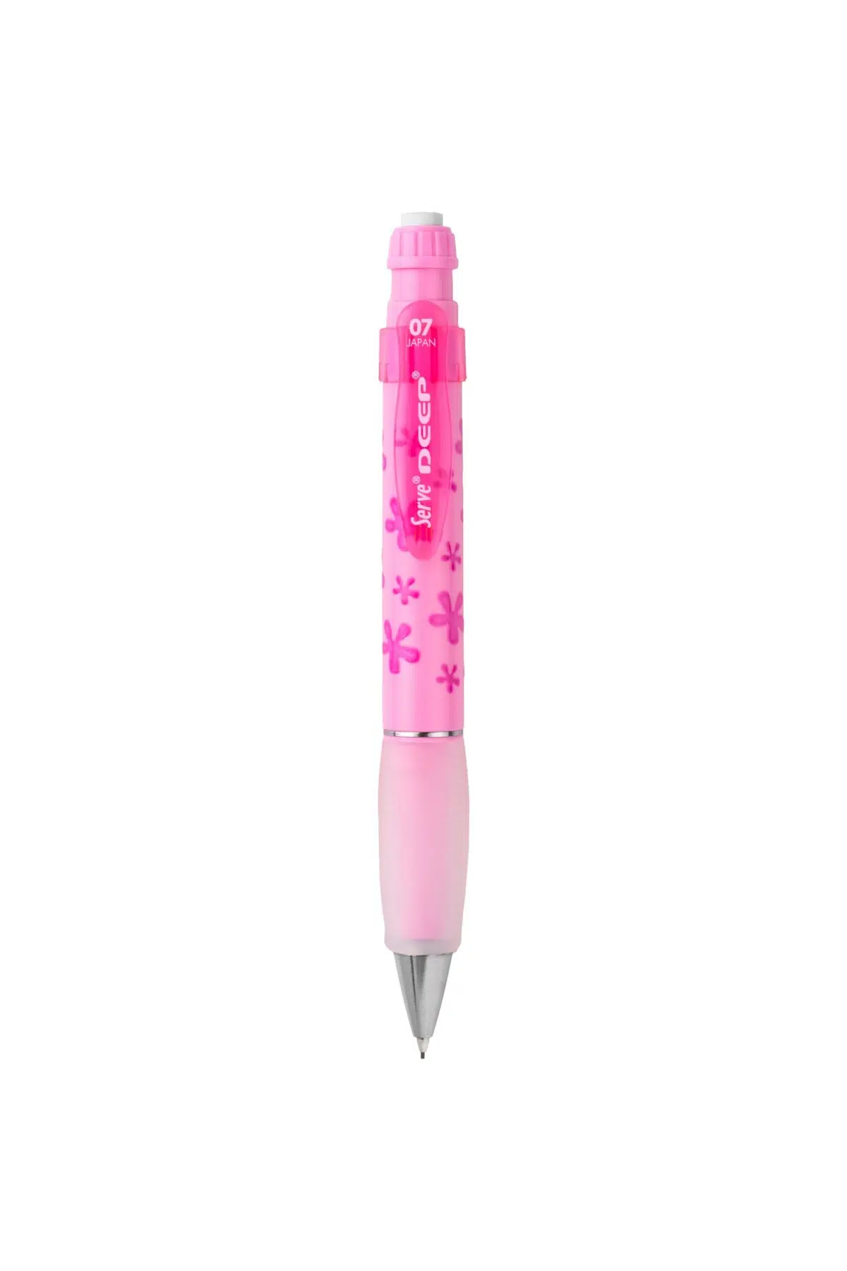 Serve Deep Uçlu Kalem - Yeni Doğa Teması Kaliteli versatil kalem; Geniş gövde tasarımlı, yüksek kaliteli mekanik kurşun kalem; Kauçuk ile rahat kullanım; Çevirince ortaya çıkan büyük boy kaliteli silgi; Gizlenebilir metal uç ile güvenli kullanım; Japonya'da üretilmiştir; 0.7 mm uç kalınlığında; Her kalem üzerinde farklı desenler yer alır.;