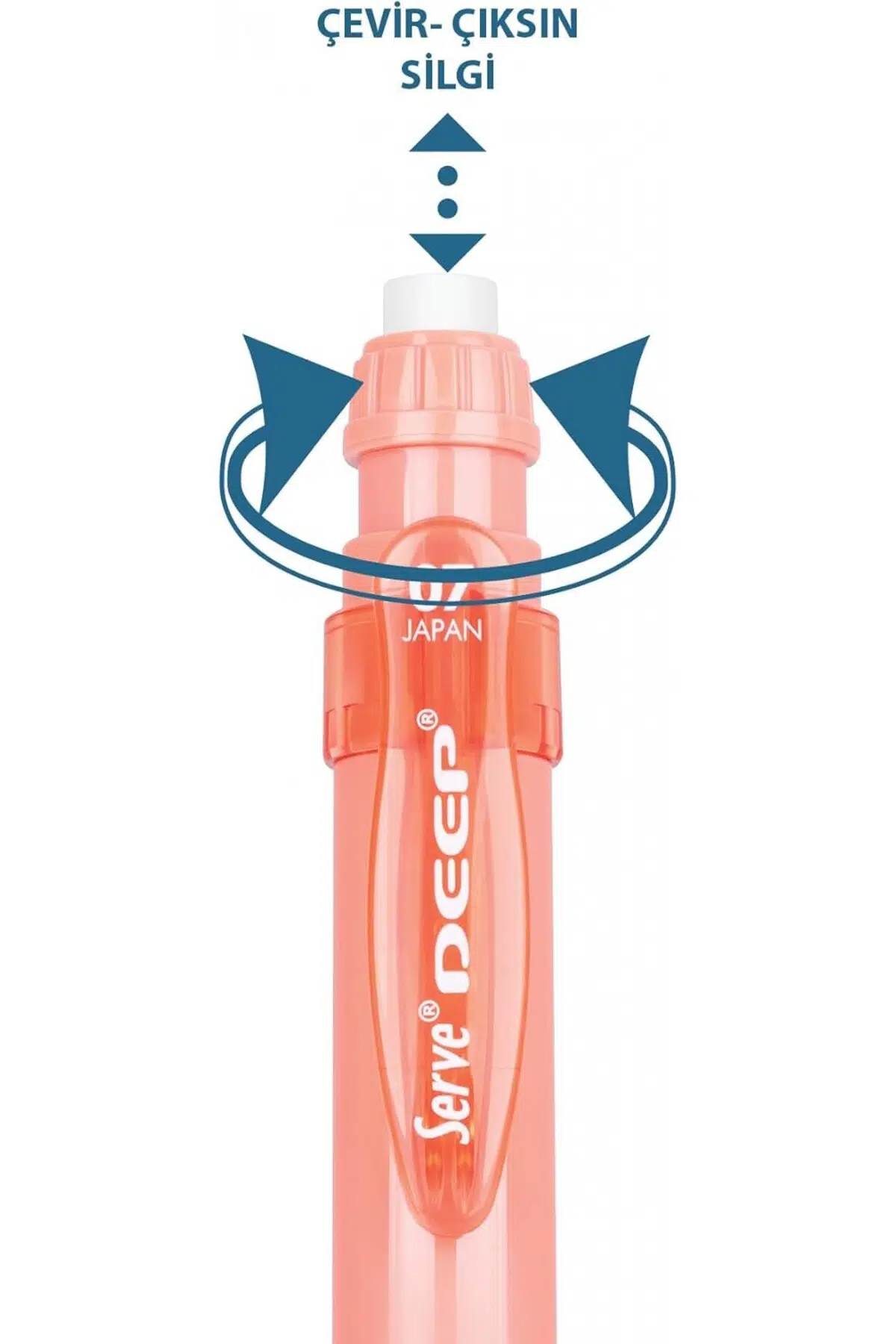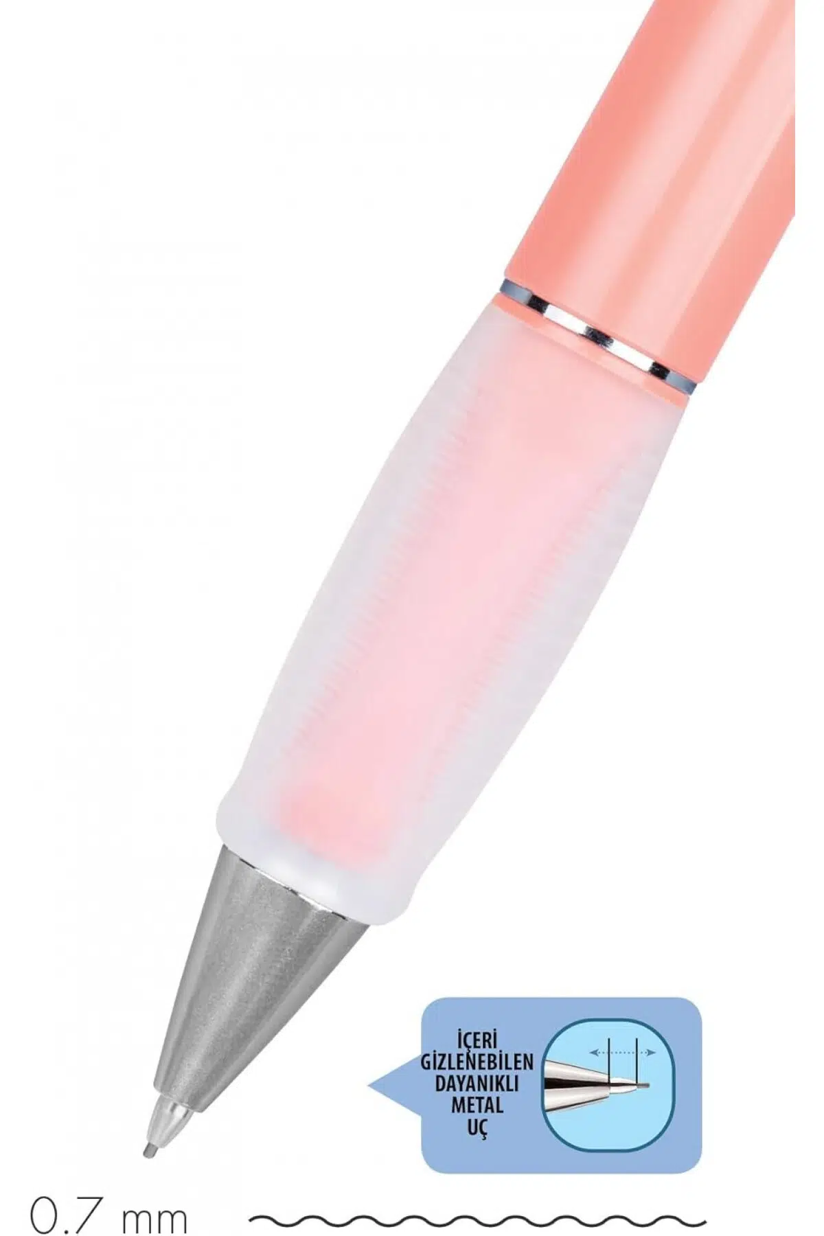 Özel Natural Colors Serisi Çevirince ortaya çıkan kaliteli silgi Gizlenebilir metal uç Kauçuk ile rahat kullanım 6 farklı renk seçeneği 0.7 mm uç