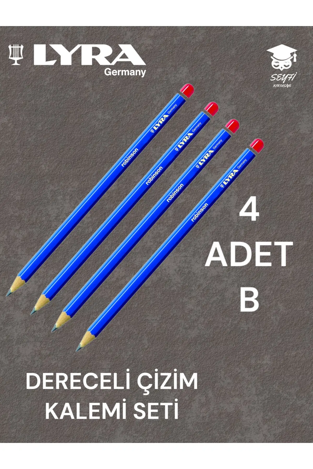 DERECELİ ÇİZİM KALEMİ SETİ 4 ADET KURŞUN ÇİZİM KALEMİ LYRA ROBİNSON ALMANYA ÜRETİM