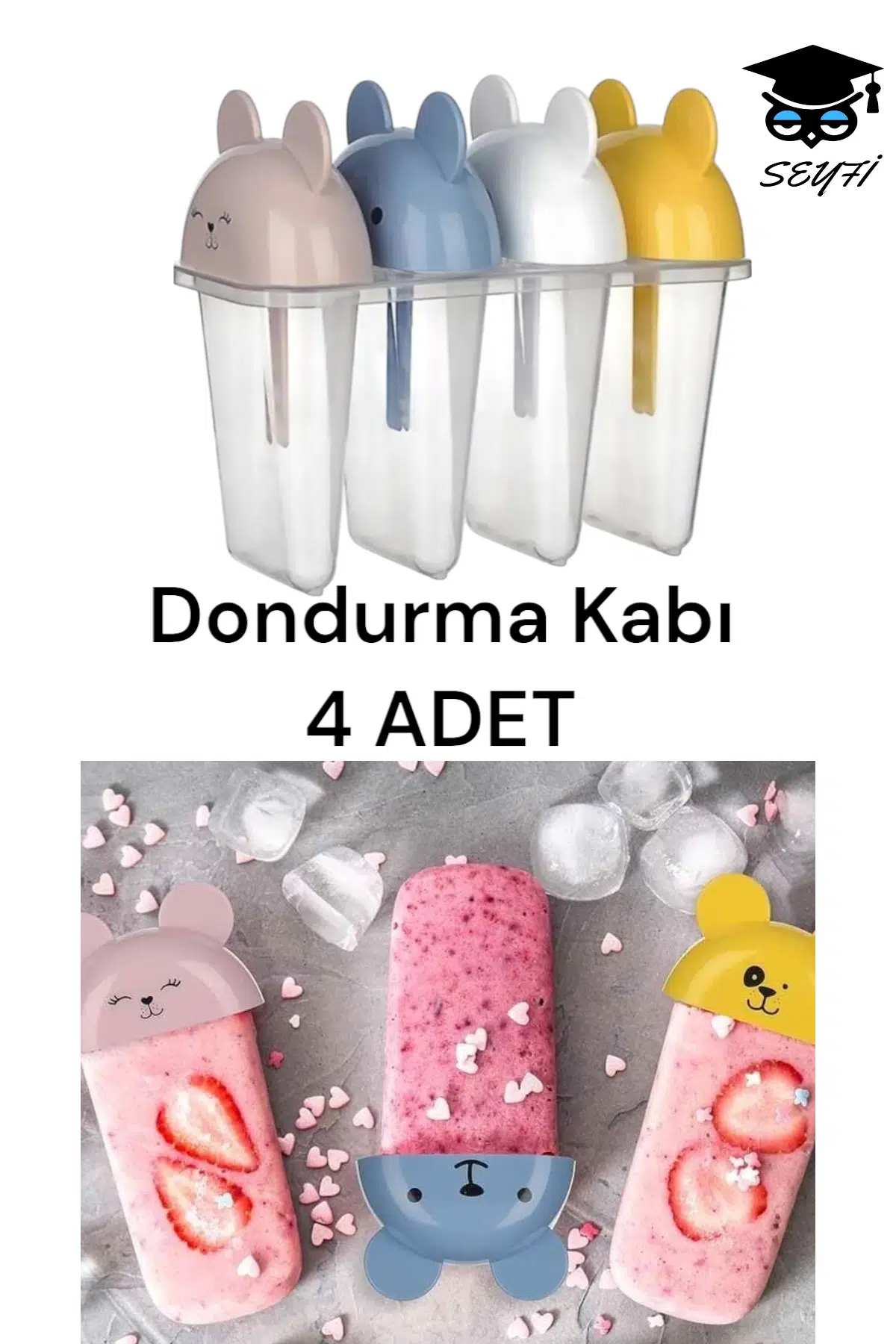Dondurma Kabı 4 ADET SEVİMLİ DESENLİ BUZ DONDURMA KALIPLARI