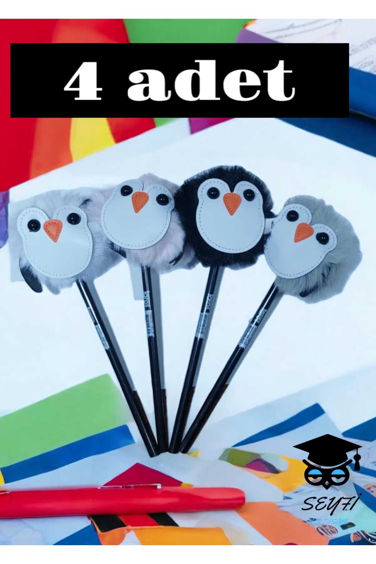 EĞLENCELİ BAŞLIKLI KURŞUN KALEM SETLERİ PELUŞ FİGÜRLER BAYKUŞ UNİCORN KEDİLER
