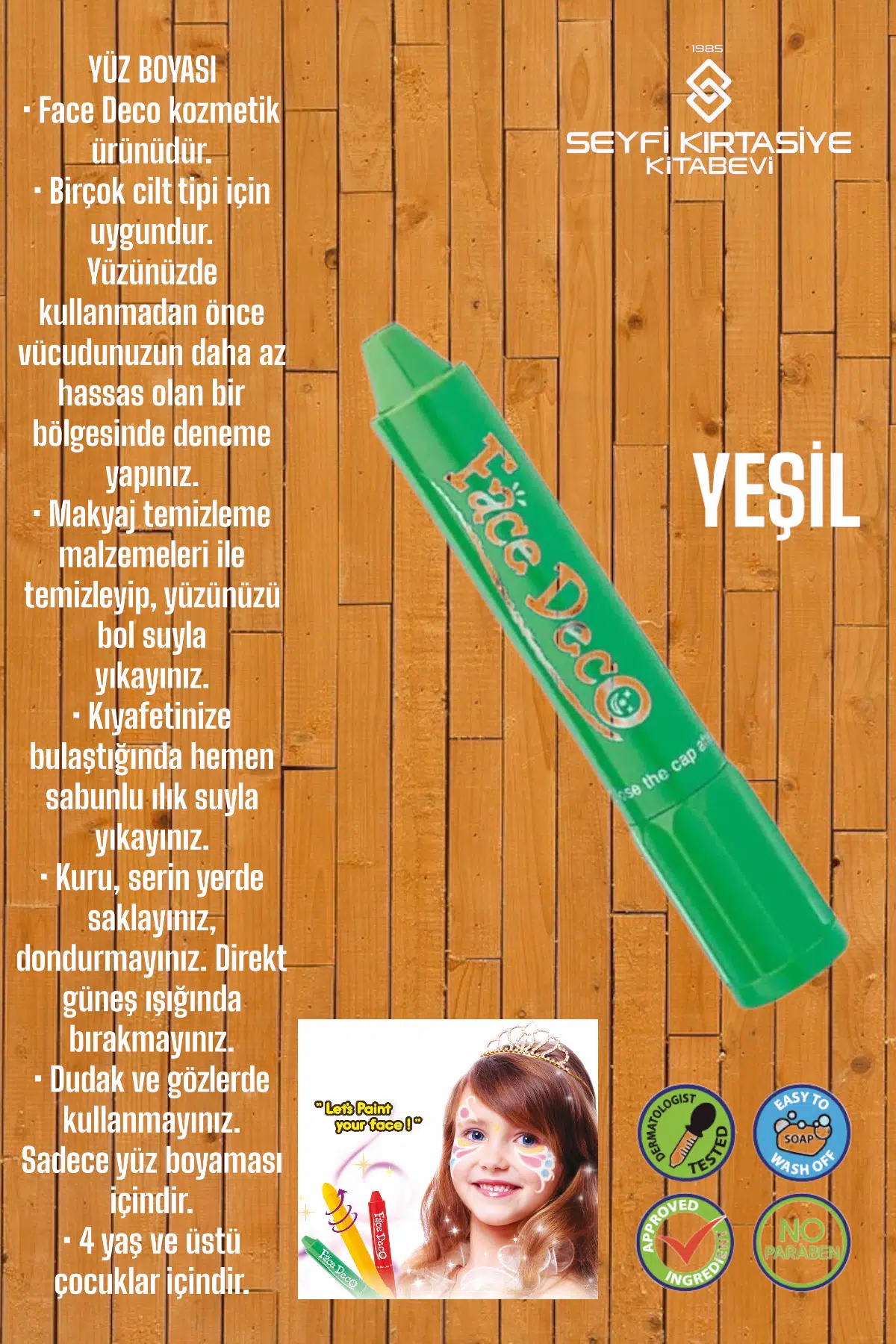 FACE TİME YÜZ BOYASI TEK RENK RUJ MODEL %100 SAĞLIĞA UYGUN CE VE AP BELGELİ AMOS ÜRETİM YERİ KORE YÜZ BOYASI • Face Deco kozmetik ürünüdür. ; • Birçok cilt tipi için uygundur. ; Yüzünüzde kullanmadan önce vücudunuzun daha az hassas olan bir bölgesinde deneme yapınız. ; • Makyaj temizleme malzemeleri ile temizleyip, yüzünüzü bol suyla yıkayınız. ; • Kıyafetinize bulaştığında hemen sabunlu ılık suyla yıkayınız. ; • Kuru, serin yerde saklayınız, dondurmayınız. ; Direkt güneş ışığında bırakmayınız. ; • Dudak ve gözlerde kullanmayınız. ; Sadece yüz boyaması içindir. ; • 4 yaş ve üstü çocuklar içindir.;