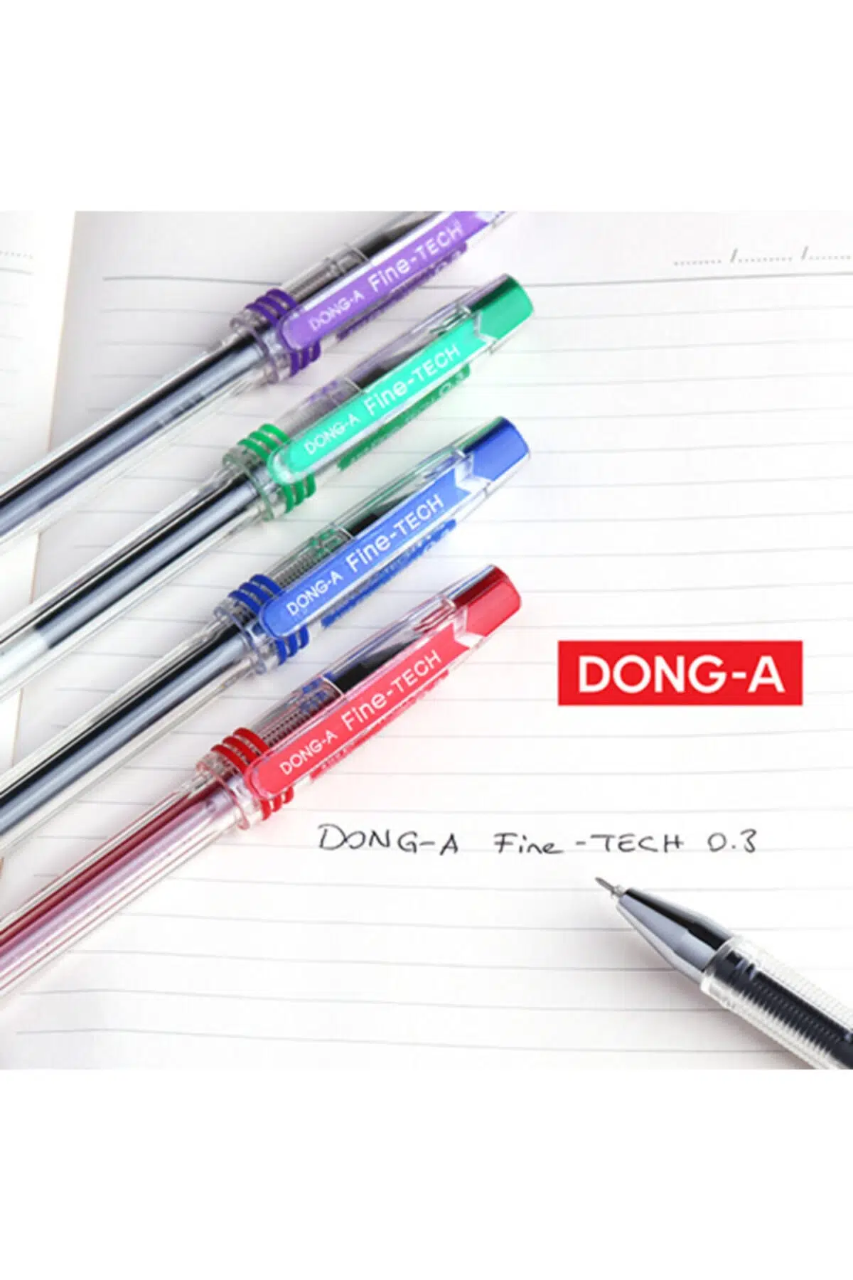 Süper ince uçlu jel mürekkepli kalem Kayıcı, su bazlı jel mürekkep, basmalı mekanizma Jel mürekkebin üstün kayganlığı ve DONG; A bilya uç teknolojisi ile mükemmel yazı; Made in Korea by Dong; A Pencil Co;