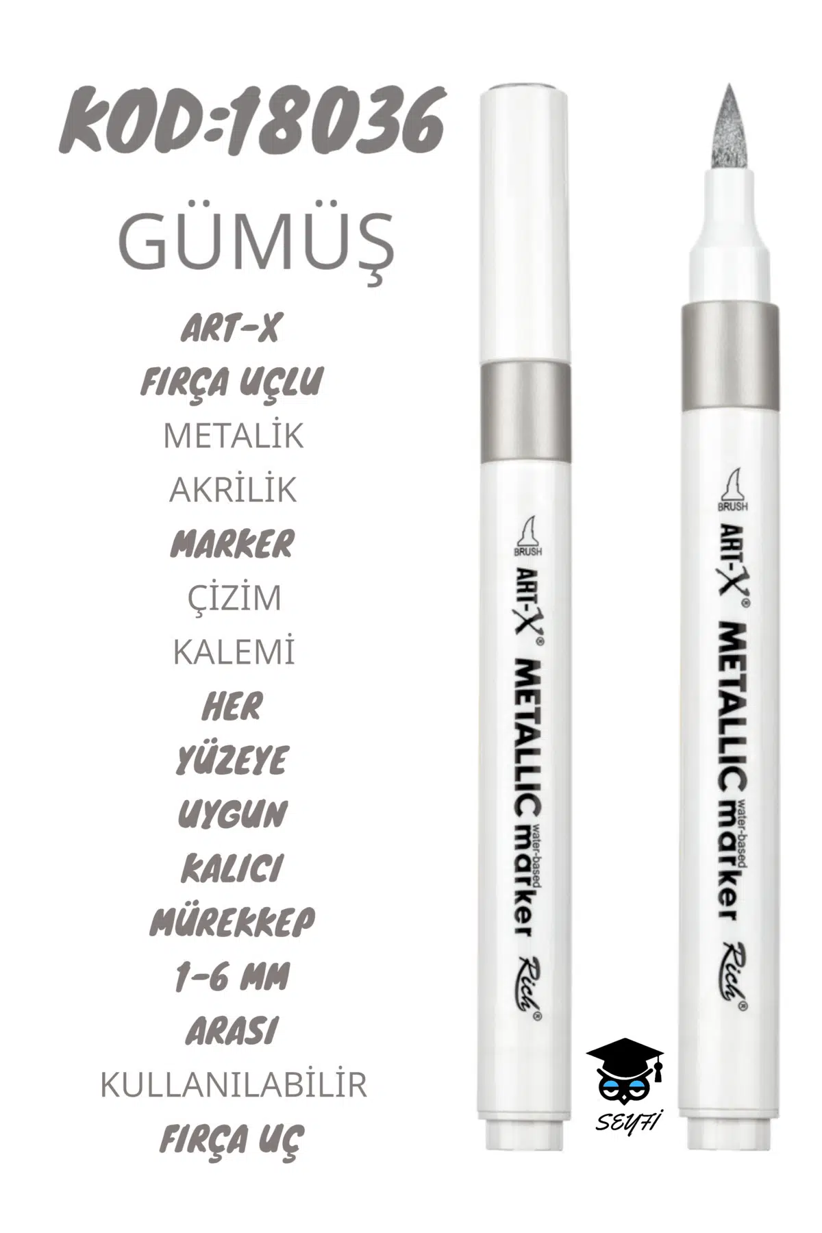 FIRÇA UÇLU METALİK AKRİLİK MARKER ÇİZİM KALEMİ HER YÜZEYE UYGUN KALICI MÜREKKEP 1-6 MM UÇ ART-X