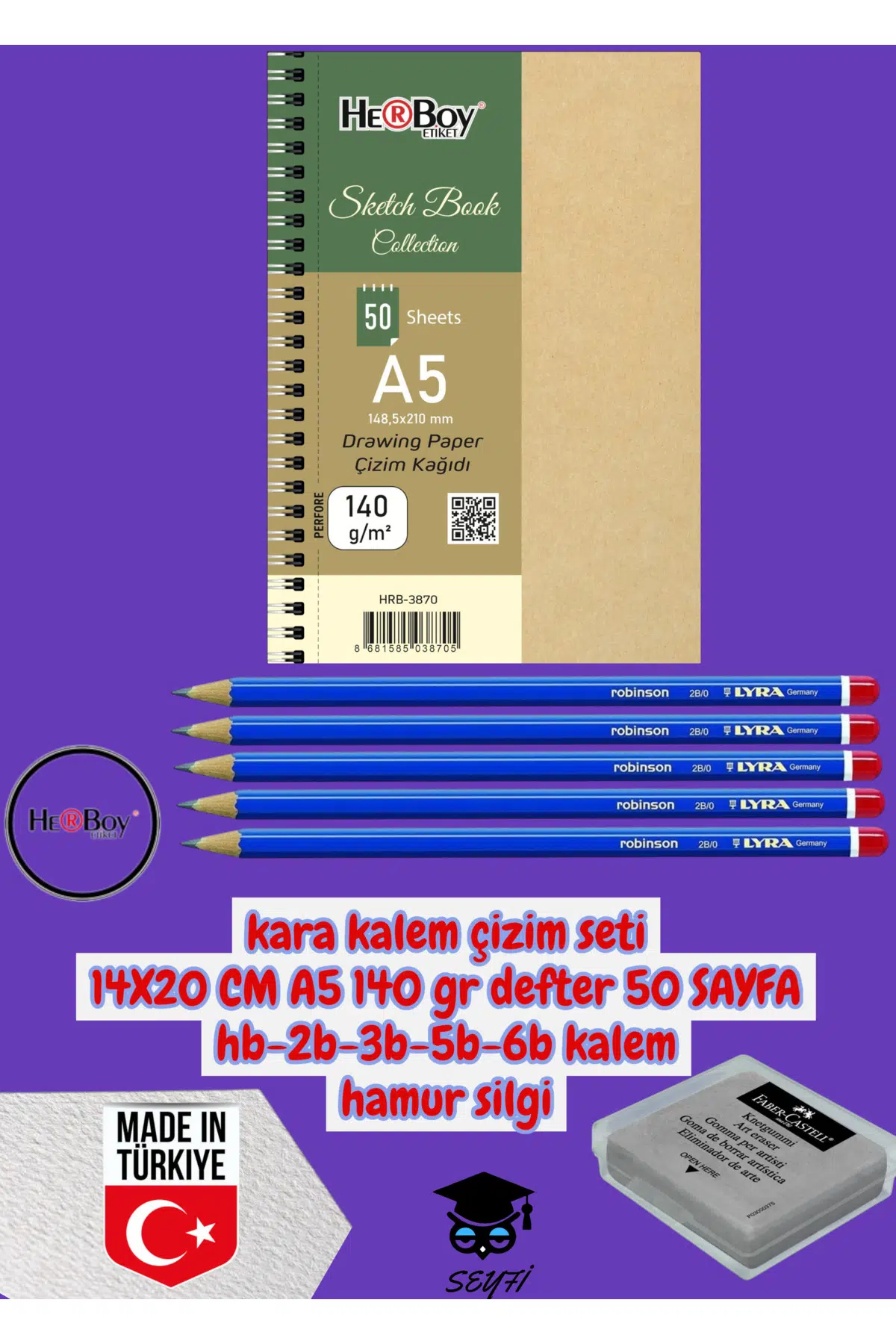 kara kalem çizim seti 14X20 CM A5 140 gr defter 50 SAYFA hb-2b-3b-5b-6b kalem hamur silgi