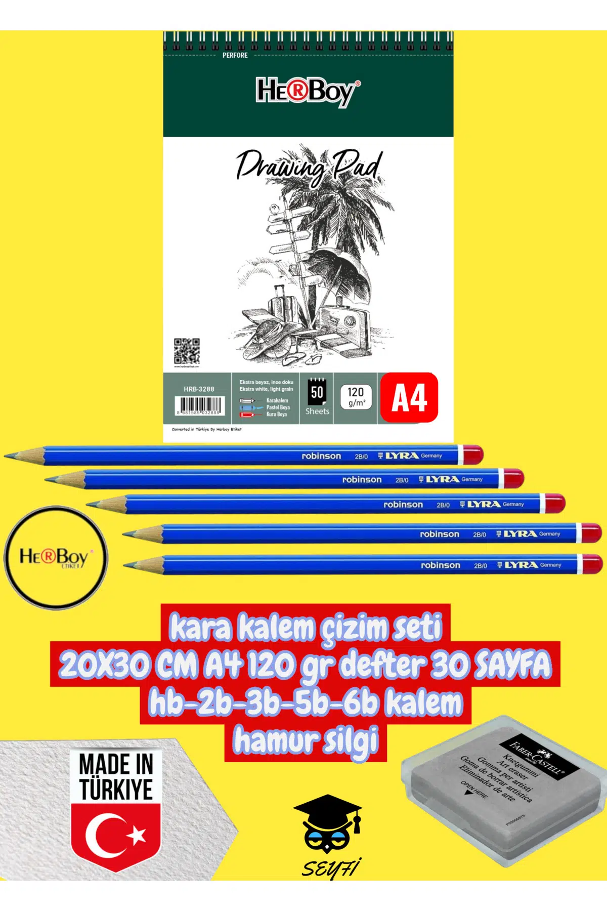 kara kalem çizim seti 20X30 CM A4 120 gr defter 30 SAYFA hb-2b-3b-5b-6b kalem hamur silgi