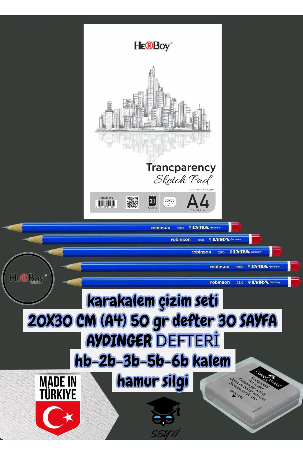 kara kalem çizim seti 20X30 CM (A4) 50 gr defter 30 SAYFA AYDINGER DEFTERİ hb-2b-3b-5b-6b kalemi