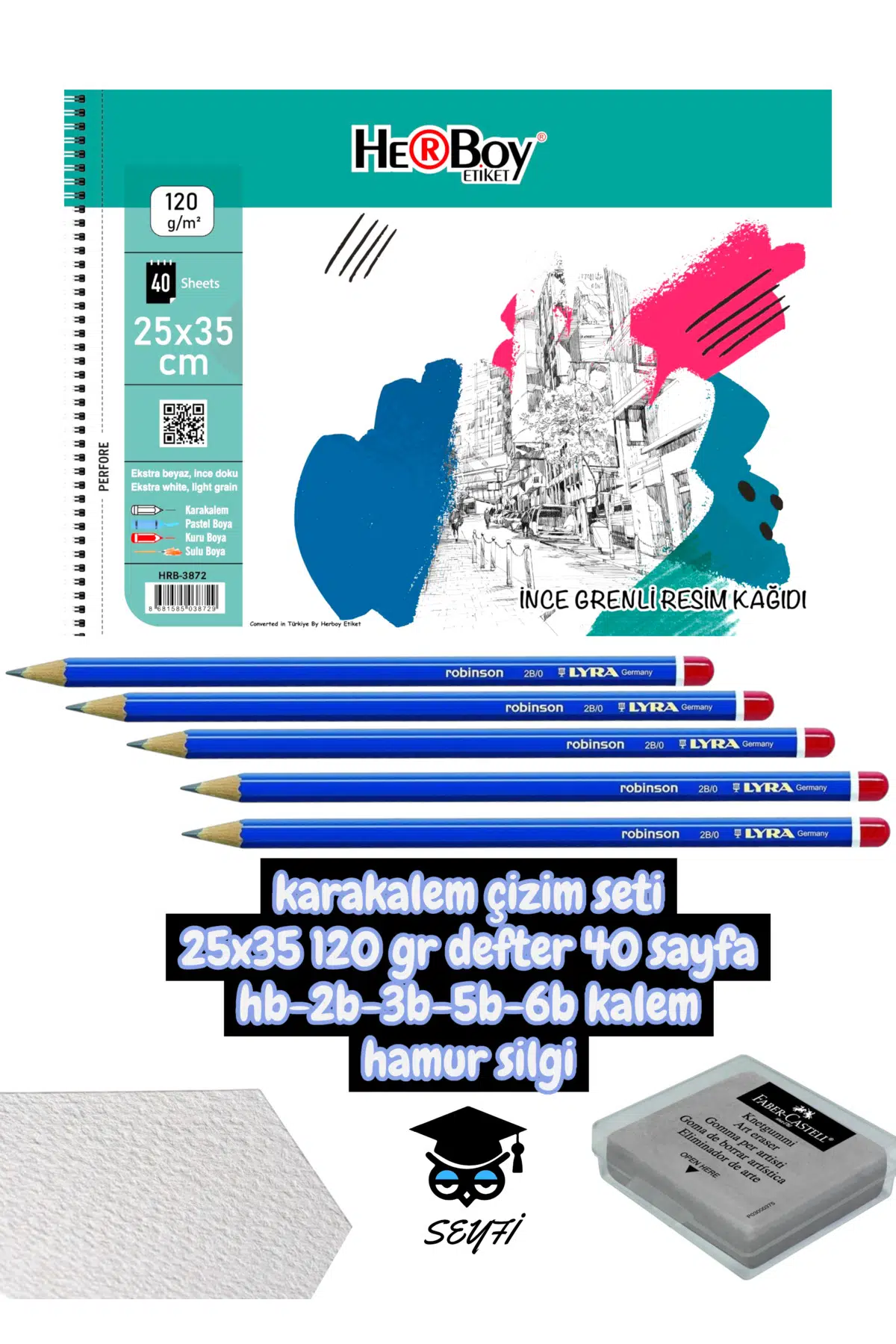 kara kalem çizim seti 14X20 CM A5 90 gr defter 40 SAYFA hb-2b-3b-5b-6b kalem hamur silgi