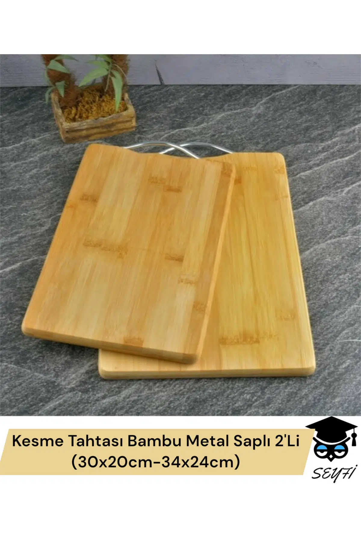 Kesme Tahtası Bambu Metal Saplı 2`Li (30x20cm-34x24cm)