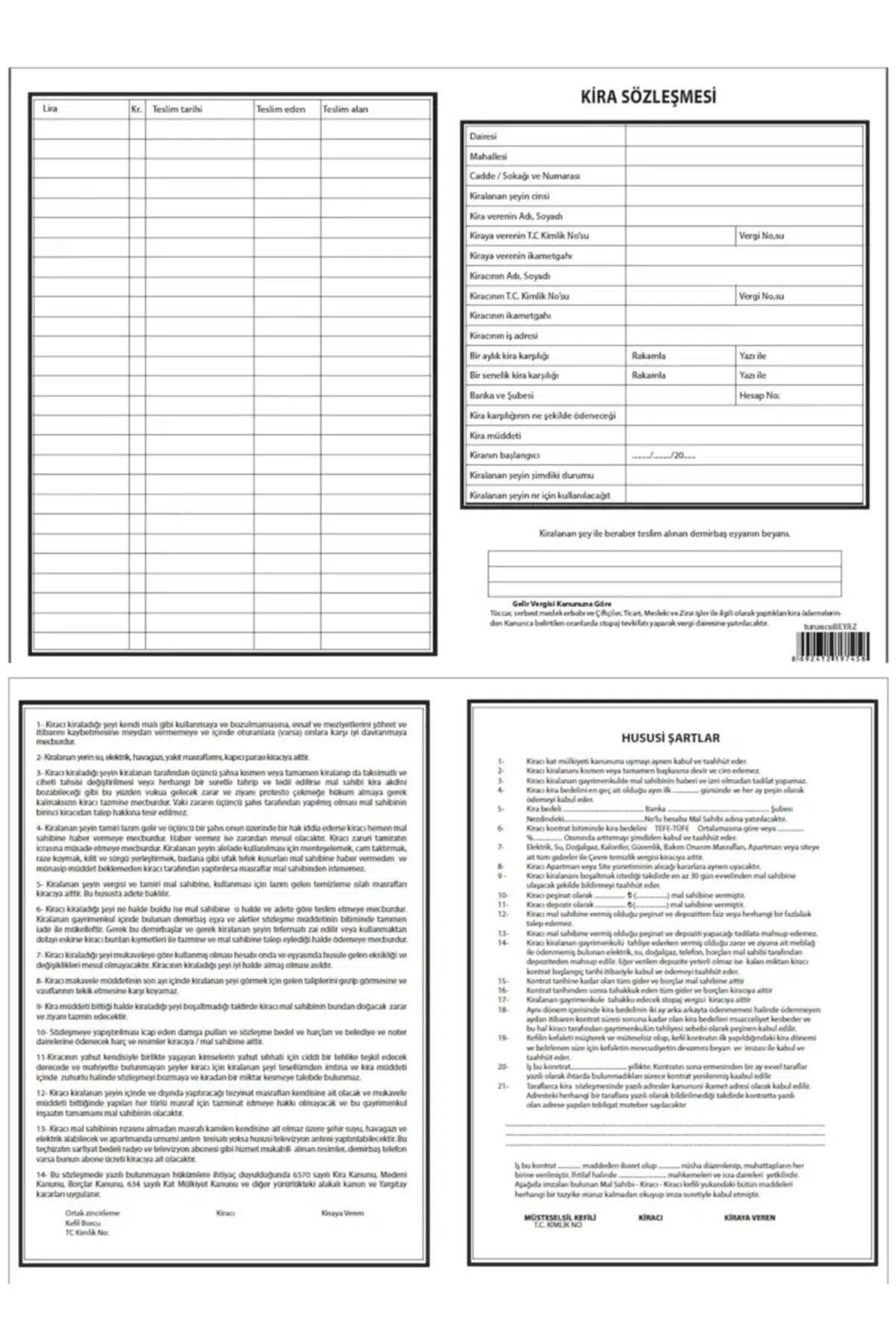 Kira Kontratı Sözleşmesi 100lü Paket
