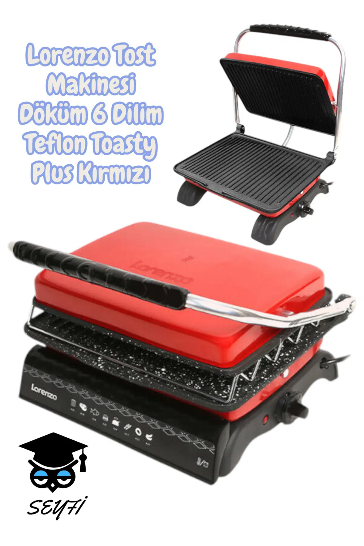 Lorenzo Tost Makinesi Döküm 6 Dilim Teflon Toasty Plus Kırmızı
