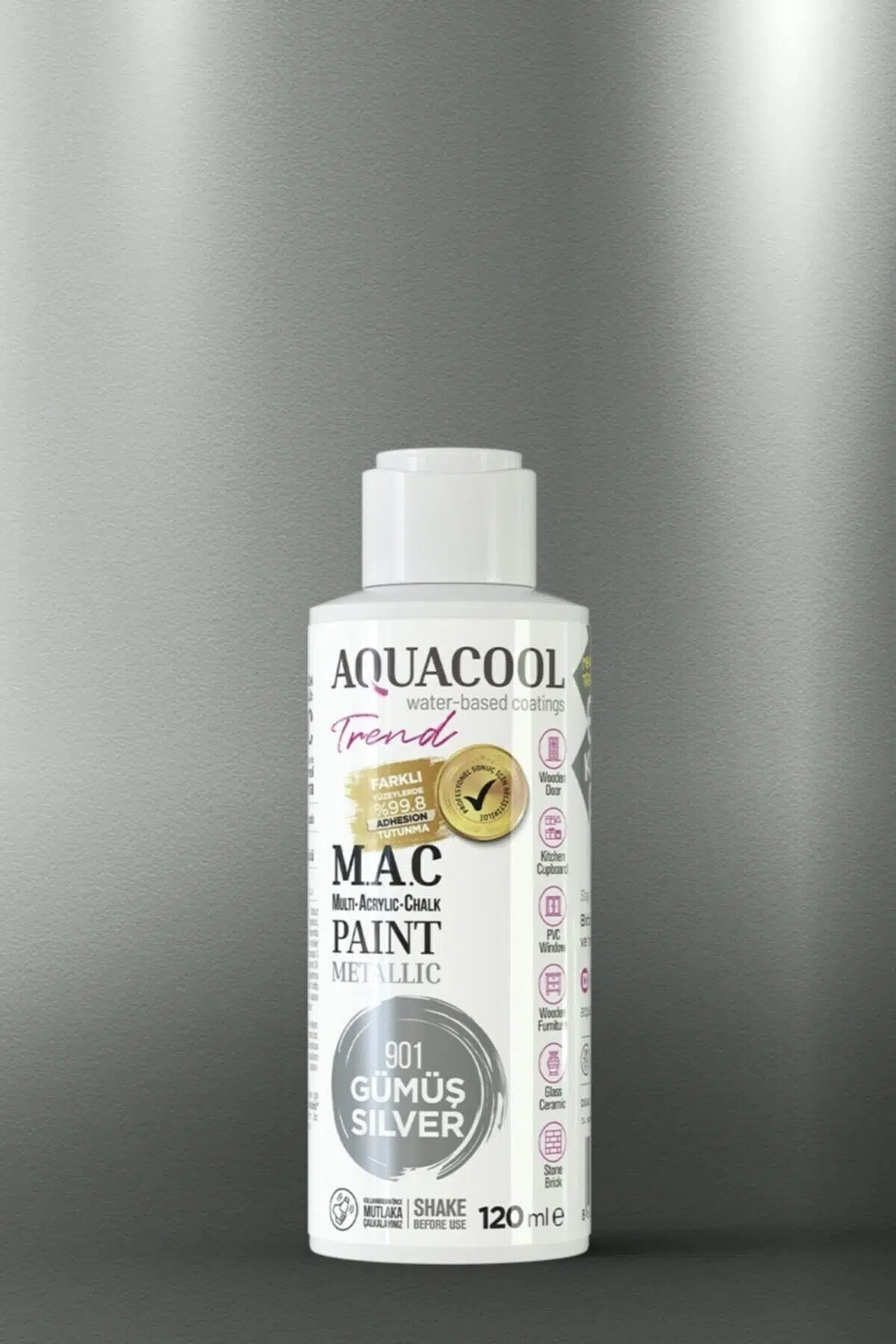 "Hangi yüzey için hangi boya tipini kullanmalıyım?" sorusu tarih oluyor; Çünkü merakla beklenen M; A; C formülü ilk kez Aquacool İnovasyon Laboratuvarlarında geliştirildi; M; A; C Boya, Multi surface, Acrylic ve Chalk birleşiminden oluşan, piyasada bilinen geleneksel hobi boyalarından farklı olarak her türlü yüzeyde üstün tutunma gücüne sahip ve sektör profesyonelleri tarafından geliştirilen nanoteknolojik bir formüldür; Bu üstün buluş sayesinde, bazen saatlerinizi ve bazen de günlerinizi harcadığınız tüm D; I; Y projeleriniz bundan böyle Aquacool güvencesi altında; Mutfağınız mı eskidi? Dolapların rengi artık sıkıcı mı geliyor? Atmaya kıyamadığınız yadigar konsol yenilenmek mi istiyor? Kapılarınız her geçen gün sararıyor mu? O zaman hiç vakit kaybetmeden fırçayı, ruloyu hazırlayın ve harekete geçin! M; A; C'in eşsiz dayanıklılığıyla mükemmel dönüşümlerin keyfini sürün; Darbe, aşınma, çizilme ve sararmalara karşı özel olarak geliştirilen M; A; C yanınızda; Deneyin, vazgeçemeyeceksiniz; M; A; C'in Öne Çıkan Özellikleri: •; Her türlü yüzeyde mükemmel tutunma gücüne sahiptir; •; En bilinen boyalara oranla iki kat daha uzun ömürlüdür; •; Darbe, çizik ve aşınmalara karşı özel bir formüle sahiptir; •; Sararmaz, leke tutmaz; •; %100 su bazlıdır; •; Üstün örtücülüğe sahiptir; •; Fırça izi bırakmaz; •; Kokusuz, insana ve doğaya zararsızdır; M; A; C'in Uygulanabileceği Yüzeyler: •; Ahşap Kapı •; Mutfak & Banyo Dolapları •; PVC Pencere •; Ahşap ve Metal Mobilyalar •; Masa, Sandalye, Dresuar, TV Ünitesi, Gardırop •; Cam ve Seramik Yüzeyler •; Taş; Tuğla Yüzeyler •; Metal Yüzeyler •; Beton Yüzeyler •; Merdiven Korkulukları •; Kalorifer Petekleri;