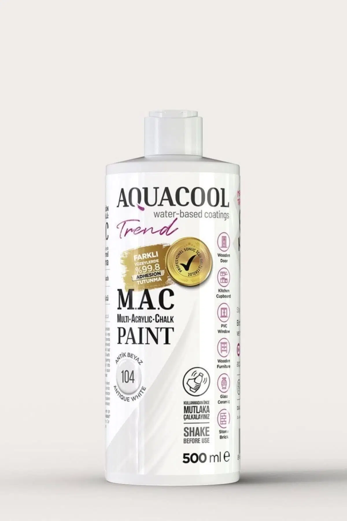 M.A.C. ; Boya, Multi surface, Acrylic ve Chalk birleşiminden oluşan, piyasada bilinen geleneksel hobi boyalarından farklı olarak her türlü yüzeyde üstün tutunma gücüne sahip ve sektör profesyonelleri tarafından geliştirilen nanoteknolojik bir formüldür. ; %100 Su bazlı, Kokusuzdur, insana ve doğaya zarar vermez Üstün örtme gücü Her türlü yüzeyde mükemmel tutunma Darbe, çizik ve aşınmalara karşı daha güçlü Sararmaz, leke tutmaz Fırça izi bırakmaz Yağ teknolojiye sahip, kolay temizlenir Lift&Peel folyolu özel kapak sistemi;