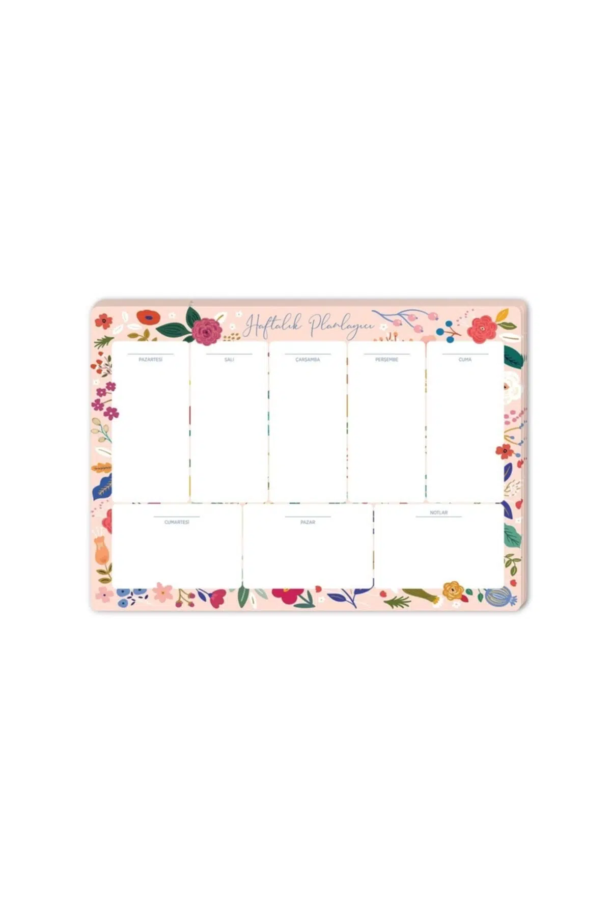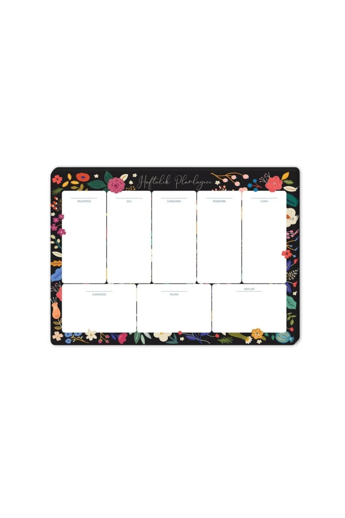 Orta boy tasarımı ile rahat kullanım sunar ve masaüstünüzde fazla yer kaplamaz; Düz tel bağlama sistemi sayesinde sayfalar kolayca çevrilebilir ve düzgün bir görünüm sağlar; Siyah çiçek desenleriyle şık ve modern bir görünüm kazandırır, çalışma alanınıza estetik bir dokunuş ekler; 17x24 cm boyutlarındaki geniş yaprakları, haftalık planlarınızı rahatça yazmanız için yeterli alan sunar; Toplamda 52 yaprak içeren bu planlayıcı, haftalık programınızı düzenli tutmanız için idealdir;