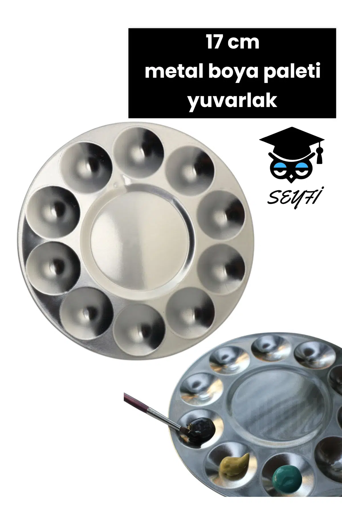 Metal Boya Paleti yuvarlak 17 cm 10 Gözlü