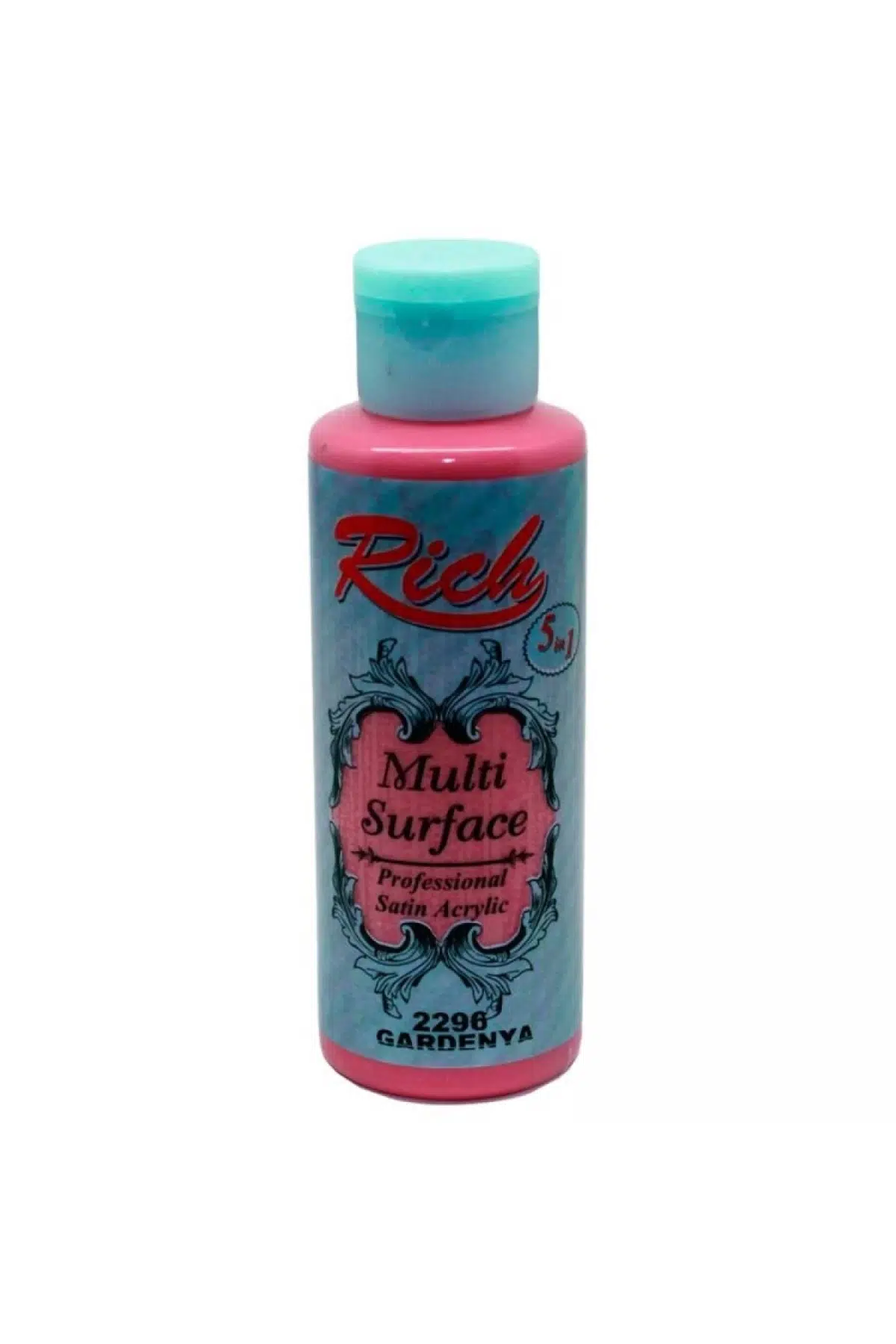 Craft ve hobi işleri için özel olarak hazırlanmış, ahşap, mdf, tahta, plastik, porselen, cam, metal, seramik, polyester, cam, kağıt, duvar, kumaş, mobilya gibi her türlü yüzeylerde boyama yapabileceğiniz su bazlı akrilik hobi ve geri dönüşüm boyası. Sağlığa zararlı toksit madde içermez. Iç ve dış yüzeylerde kullanılabilen dayanıklı bir boyadır. Rich multi surface boyalarla eskiyi yenileyebilirsiniz! Mutfak dolabı boyama , zigon sehpalar, yemek odası takımı masa ve sandalye boyama, çelik kapı boyama, fayans boyama, genç odası boyama, oda kapısı boyama bunların hepsini ve daha fazlasını rich multisurface her yüzeye uygulanan boya ile zımparasız astarsız hiç boyama bilmeseniz bile kolaylıkla uygulayabilirsiniz. 1/3 oranında sulandırıp ilk kat sürülür 6-8 saat sonra ikinci kat uygulanır ve rich high gloss vernikle ürün korumaya alınır. Uygun ve hesaplı ev yenileme tamamen elinizde!