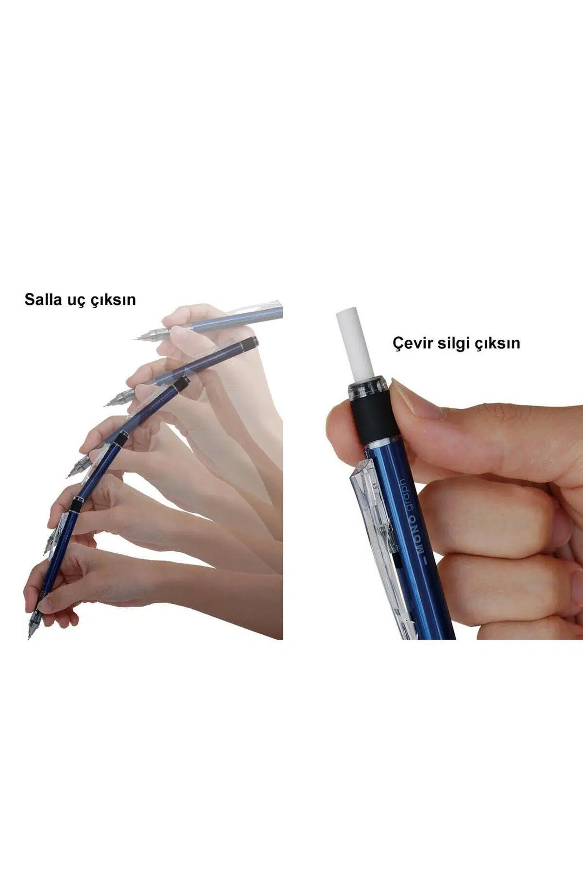 Tombow Mono Graph Mekanik Versatil Uçlu Kalem 0.7 Tombow Mono Graph, yenilikçi teknolojisiyle yazım deneyimini bir üst seviyeye taşır.; Yazı yazma, not alma, çizim ve teknik işler için ideal bir kullanım sunar.; Ergonomik yapısı sayesinde uzun süreli kullanımlarda bile konfor sağlar.; Öne Çıkan Özellikler: Salla-Uç Teknolojisi: Kalemi hafifçe sallayarak uç çıkarabilirsiniz.; Klip Baskı Mekanizması: Klipse basarak da uç çıkarma fonksiyonu mevcuttur.; Kilit Özelliği: Klips kilitleme sistemiyle uç sabitlenebilir, yazım sırasında içeri kaçmaz.; Döner Silgi Mekanizması: Kalemin arkasında yer alan uzun silgi, çevirme hareketiyle kullanıma hazır hale gelir.; Uç Kalınlığı: 0.7 mm uçlarla uyumludur, yumuşak ve net yazım sunar.; Tombow kalitesiyle üretilen Mono Graph serisi, günlük kullanım, ofis işleri ve öğrenciler için mükemmel bir tercihtir.