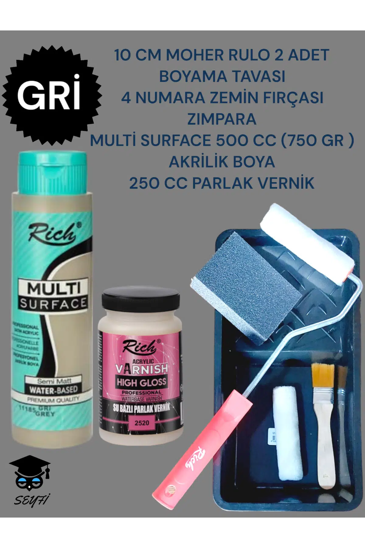 Multi Surface 500cc (750 Gr) Akrilik Boyama Seti TAVA RULO FIRÇA ZIMPARA VERNİK DOLAP BOYAMA SETİ