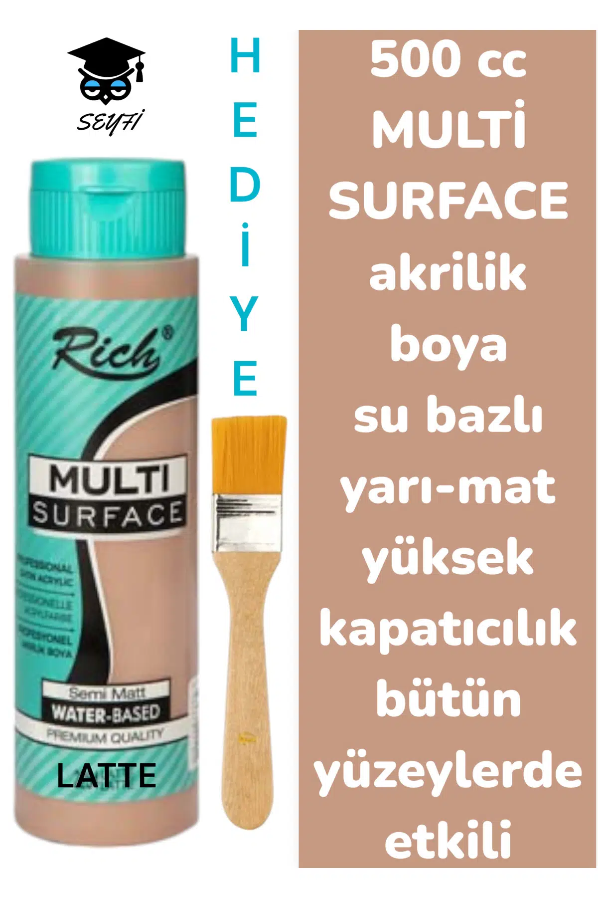 MULTİ SURFACE AKRİLİK BOYA 500 CC-TÜM YÜZEYLERDE İDEAL-SU BAZLI-YÜKSEK KAPATICI PİGMENT-YARI MAT