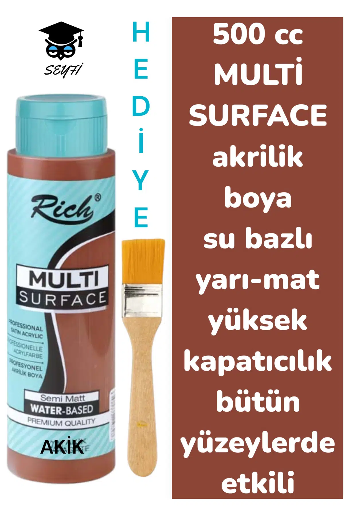 MULTİ SURFACE AKRİLİK BOYA 500 CC-TÜM YÜZEYLERDE İDEAL-SU BAZLI-YÜKSEK KAPATICI PİGMENT-YARI MAT