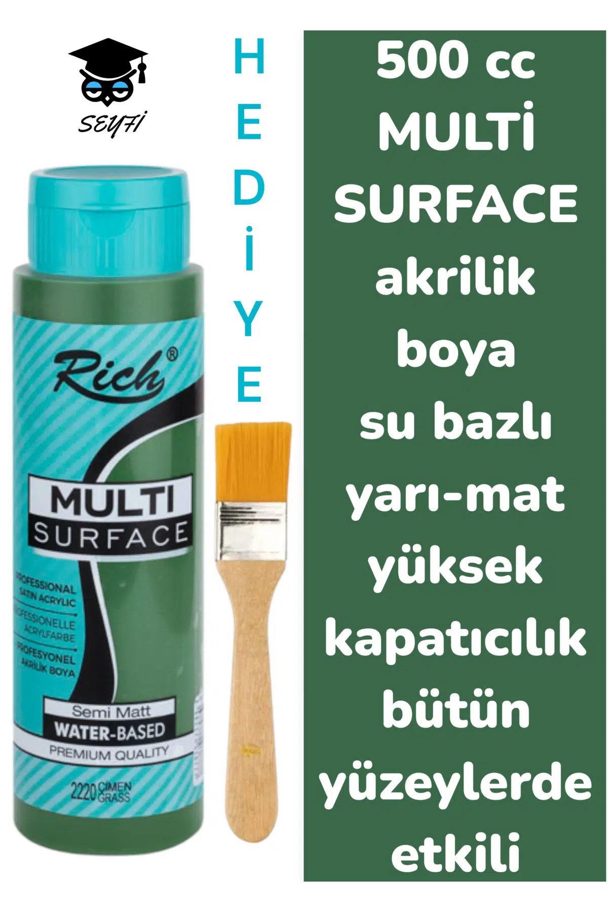 MULTİ SURFACE AKRİLİK BOYA 500 CC-TÜM YÜZEYLERDE İDEAL-SU BAZLI-YÜKSEK KAPATICI PİGMENT-YARI MAT