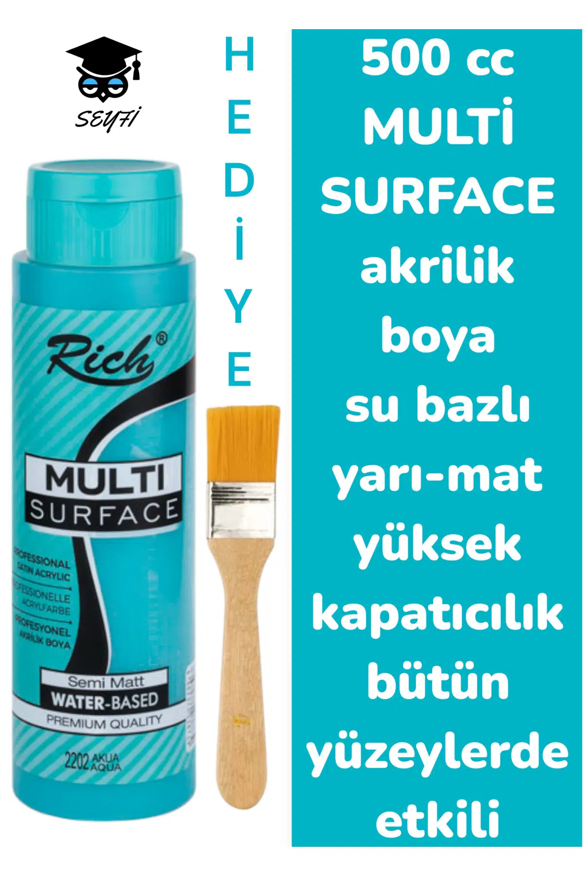 MULTİ SURFACE AKRİLİK BOYA 500 CC-TÜM YÜZEYLERDE İDEAL-SU BAZLI-YÜKSEK KAPATICI PİGMENT-YARI MAT