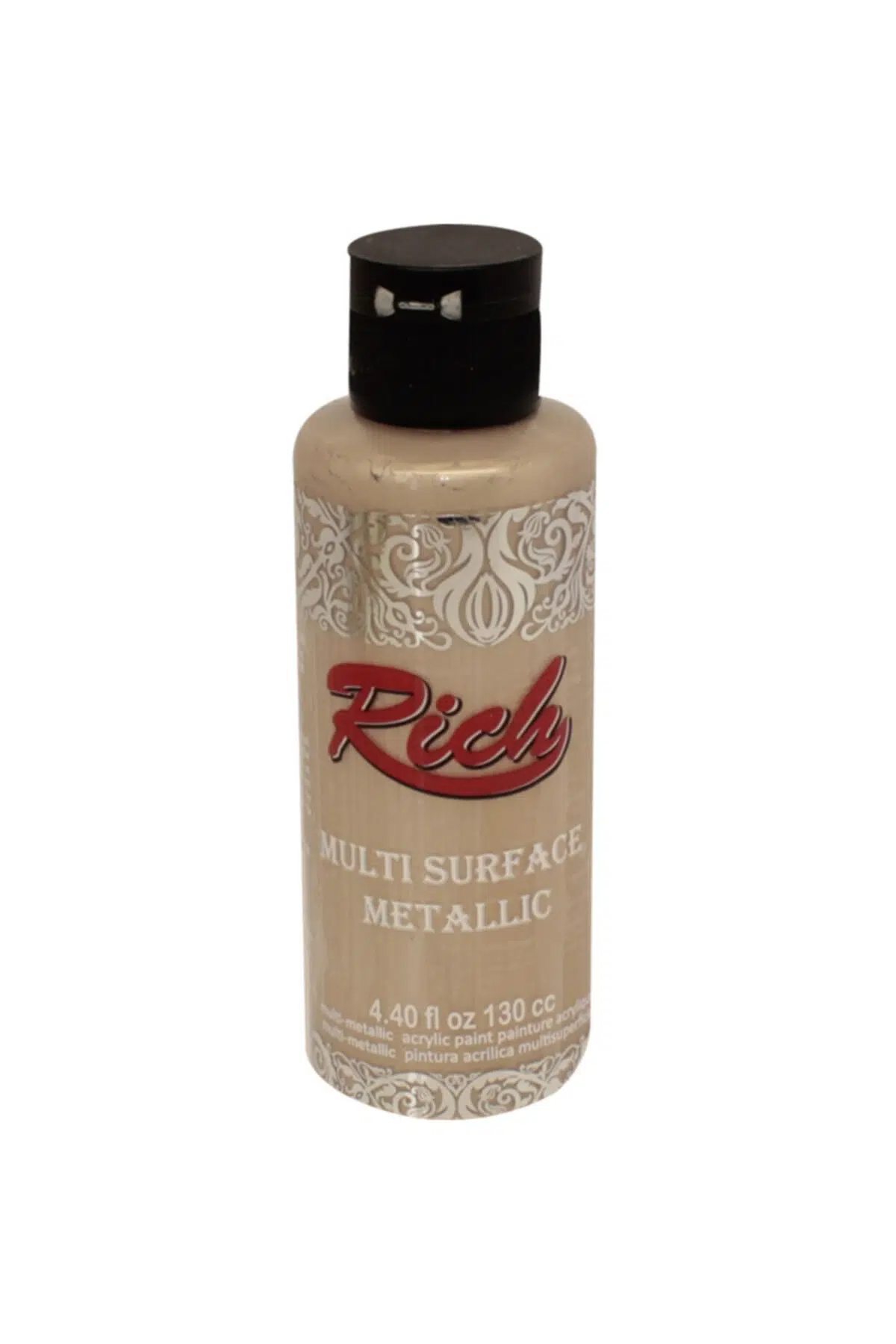 Rich Multi Surface Metalic Şampanya 130 cc Akrilik Boya 130-6518 Rich Multisurface serisinde Metalik Renkler Her türlü yüzeyde uygulama yapabileceğiniz canlı sedef renkler aldığınız ürünü aklınıza gelebilecek tüm yüzeylerde kullanabiliyorsunuz ( metal, seramik, cam, kumaş, ahşap