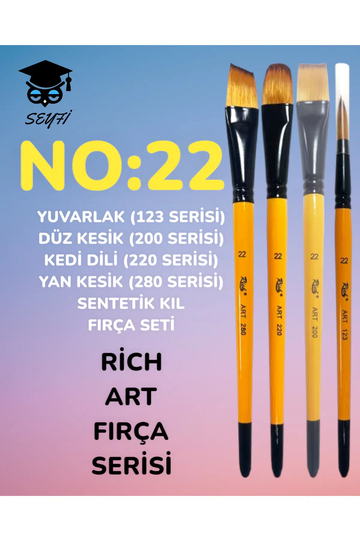 NO:22 YUVARLAK (123 SERİ) DÜZ KESİK (200 SERİ) KEDİ DİLİ (220 SERİ) YAN KESİK (280 SERİ) FIRÇA SETİ
