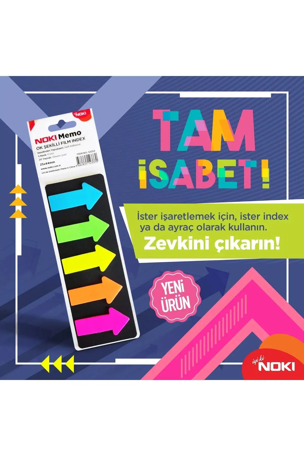 Yapışkanlı yapısı sayesinde, notlarınızı hızlı ve kolayca yapıştırarak düzenleyebilirsiniz; Şeffaf film, notlarınızın içeriğini gizli tutarak gizli notlar almanızı sağlar; Ok şekli tasarımı ile notlarınızı daha estetik ve düzenli bir şekilde yazmanıza olanak tanır; 5 renk seçeneği ve 20 yapraklık paket, farklı renklerde notlar almanız için idealdir;