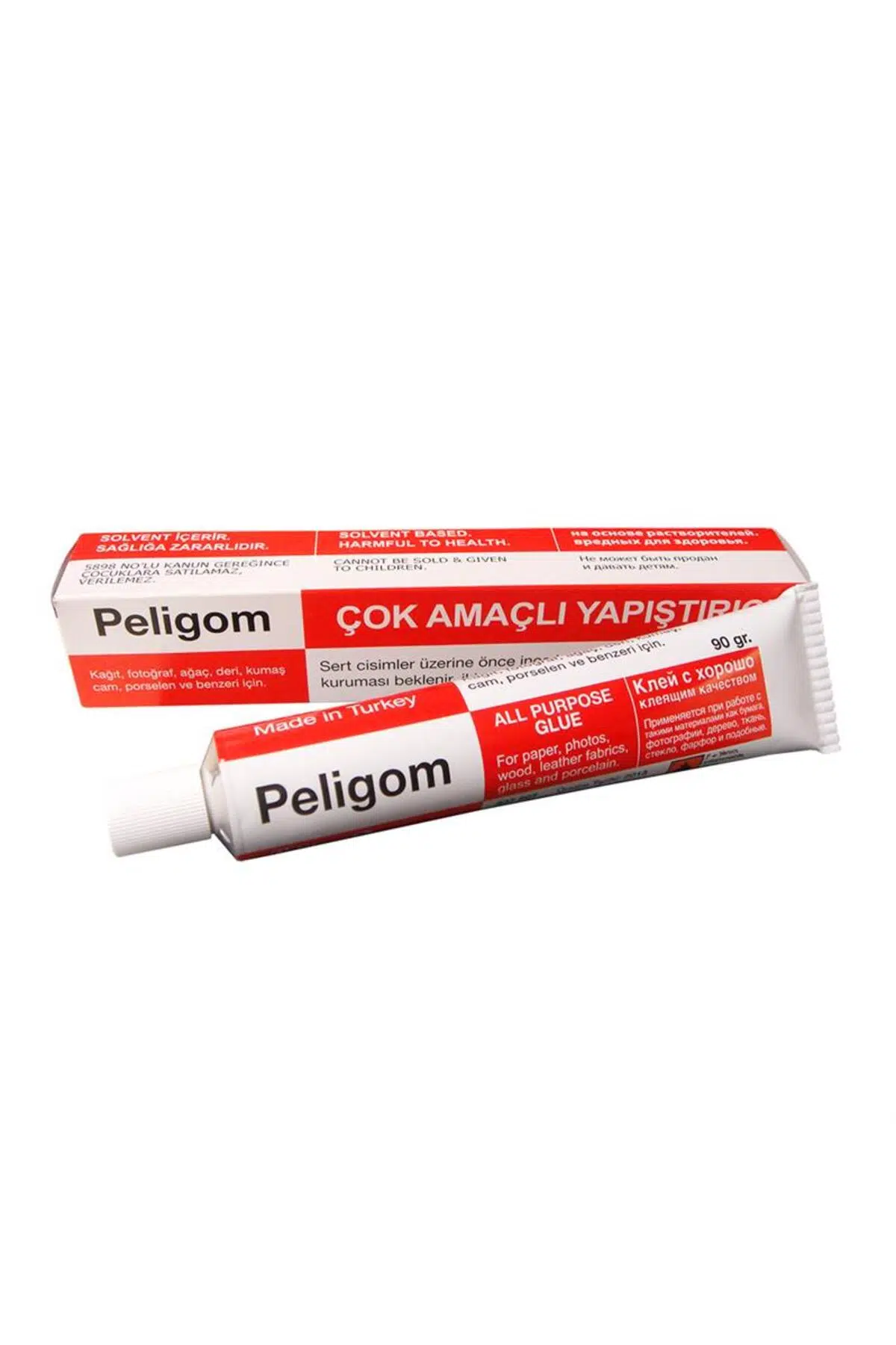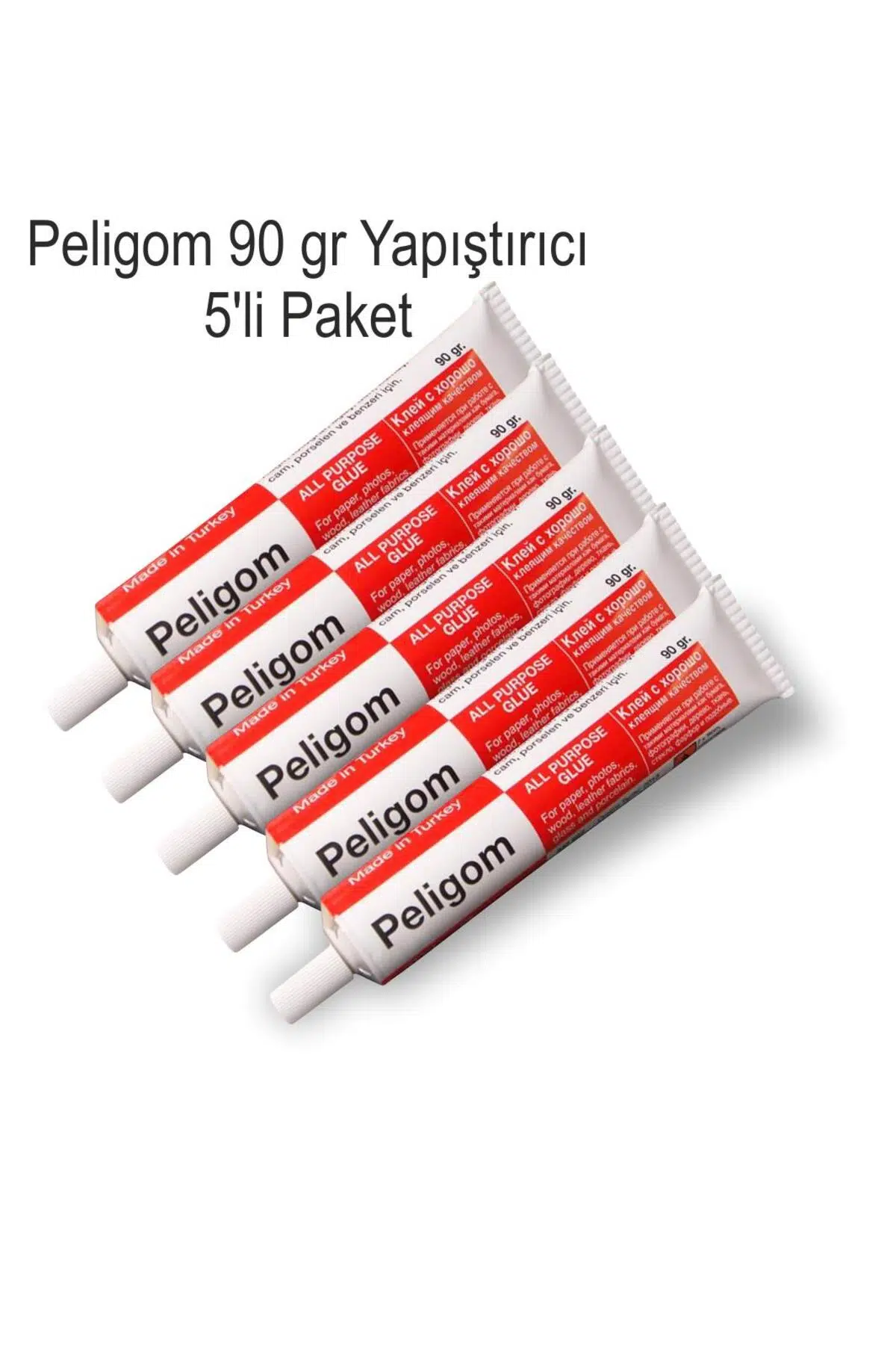 Peligom Çok Amaçlı Sıvı Yapıştırıcı 90 Gram'lık Metal Tüp 5 li Paket Kağıt, karton, fotoğraf, plastik vs. ; çok amaçlı her şeyi yapıştırabilirsiniz. ; Çabuk yapışmasını sağlamak için solvent içermektedir. ; Teknik Özellikler: 90 gramlık, metal tüp ambalajda satışa sunulur. ; Uçucu ve yüksek derecede yanıcı solventler içerdiğinden, yetişkinlerin kullanabileceği bir üründür. ; Güvenli kullanım için saklama sırasında veya yapıştırıcı ile çalışırken gereken önlemler alınmalıdır. ; + 5 ° C'nin altındaki sıcaklıklarda kullanılması önerilmez. ; Yapıştırılacak malzemeler temiz ve kuru olmalı, yağdan ve tozdan arındırılmalıdır. ; Yapıştırıcı ile çalışırken ısı ve ateş kaynaklarına yakın olmamaya dikkat edin. ; Islak yapıştırıcı lekelerini kurumasını beklemeden hemen çıkarın. ; Kurumuş lekeleri aseton ile temizlemeyi deneyin. ; Kullanım Faydaları: Pelikan Poligom 90gr Metal tüp No:11 solvent içeren, sıvı ve oldukça güçlü bir yapıştırıcıdır. ; Tadilat işlemleri ve el sanatları için çok yönlü uygulama olanağı sunar. ; Solvent içeren formülü ile hızlı kuruma ve yüksek yapışma performansına sahiptir. ; Sert cisimler üzerine ince bir kat olarak uygulanır. ; İlk katın kuruması beklenir. ; Daha sonra ikinci kat sürülür ve yapıştırılmak istenen nesne ya da obje sıkıştırılarak sabitlenir. ; Plastik veya metalin yapıştırılmasında, birbirine yapışacak parçalara hafif bir zımpara uygulaması yapmak daha iyi sonuçlar elde etmenizi sağlayabilir. ; PELİKAN YAPIŞTIRICI PELİGOM NO:11 90GR 337900 Pelikan Peligom No:11 sıvı yapıştırıcı, çeşitli malzemeleri yapıştırmak için çok amaçlı olarak kullanılabilen kuvvetli yapıştırıcılardan biridir. ; Farklı yüzeyler arasında yüksek yapışma gücü ve hızlı kuruma özelliği ile öne çıkan Peligom No:11 kâğıt, fotoğraf, ağaç, deri, kumaş, cam, porselen ve benzeri yüzeylerde kullanılabilir. ; Aynı türden ya da farklı türdeki malzemeleri yapıştırmak için tercih edilebilir. ; Pelikan Hakkında Premium kategorisindeki ürün yelpazesiyle, 125 yıldan uzun bir süredir Alman markası geleneğini yansıtan Pelikan, dünyanın önde gelen mürekkep ve kırtasiye ürünleri markalarından biridir. ; Güzel yazı, profesyonel yazı, boyama ve el sanatları, ofis sarf malzemeleri ve yazıcı aksesuarları başta olmak üzere geniş bir ürün portföyüne sahiptir. ; Peligom çok amaçlı yapıştırıcı. ; Kağıt, fotoğraf, ağaç, deri, kumaş, cam, porselen ve benzeri içindir. ; Sert cisimler üzerine önce ince bir kat sürülür, kuruması beklenir, ikinci kat sürülür ve sıkıştırılır. ; DİKKAT!: Yanıcı ve tahriş edici maddedir.;