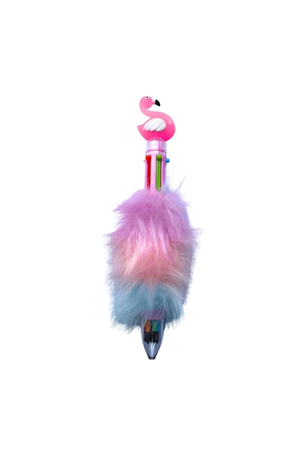 Pembe Renkli Flamingo Peluş 6 Renk Tükenmez Kalem