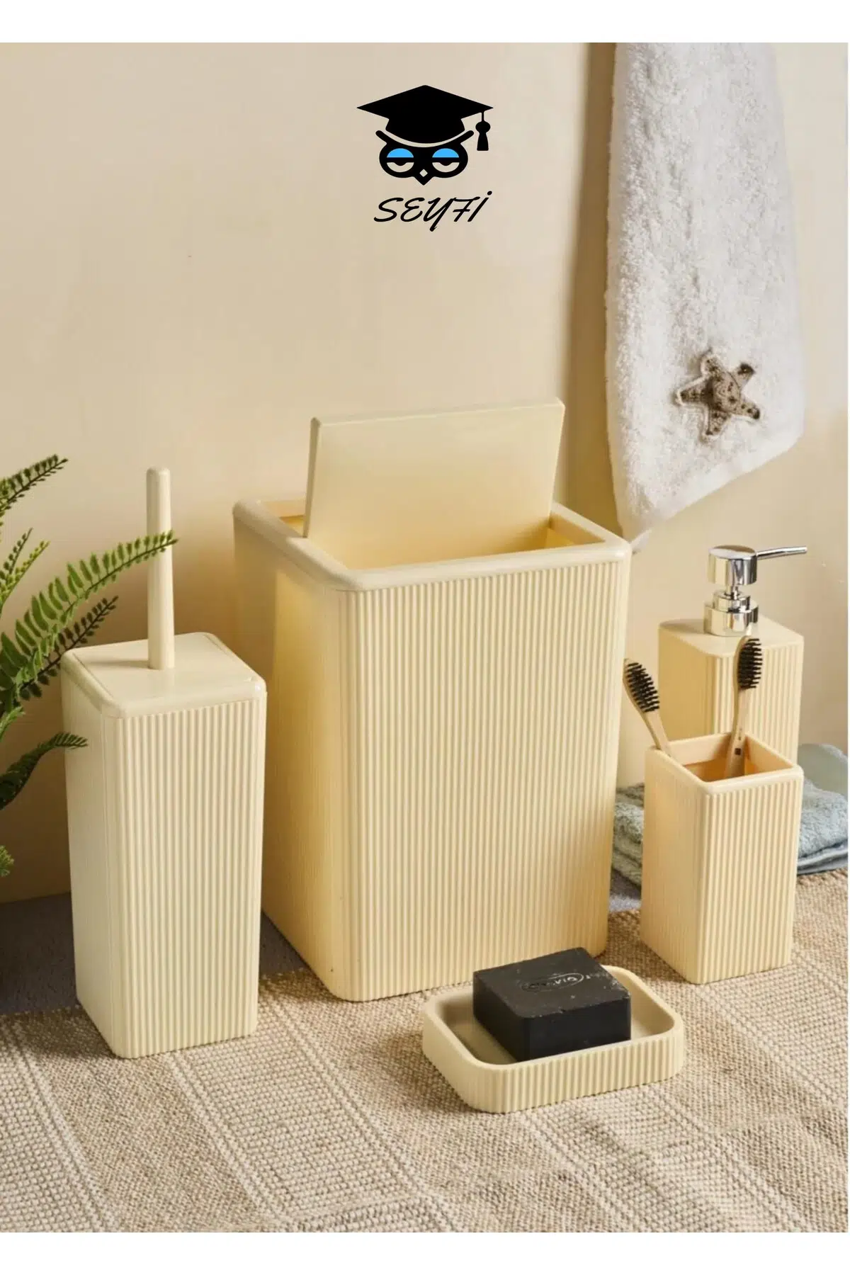 PLASTİK 5`li Kare Banyo Seti Krem renk Palerm0 TÜRK MALI