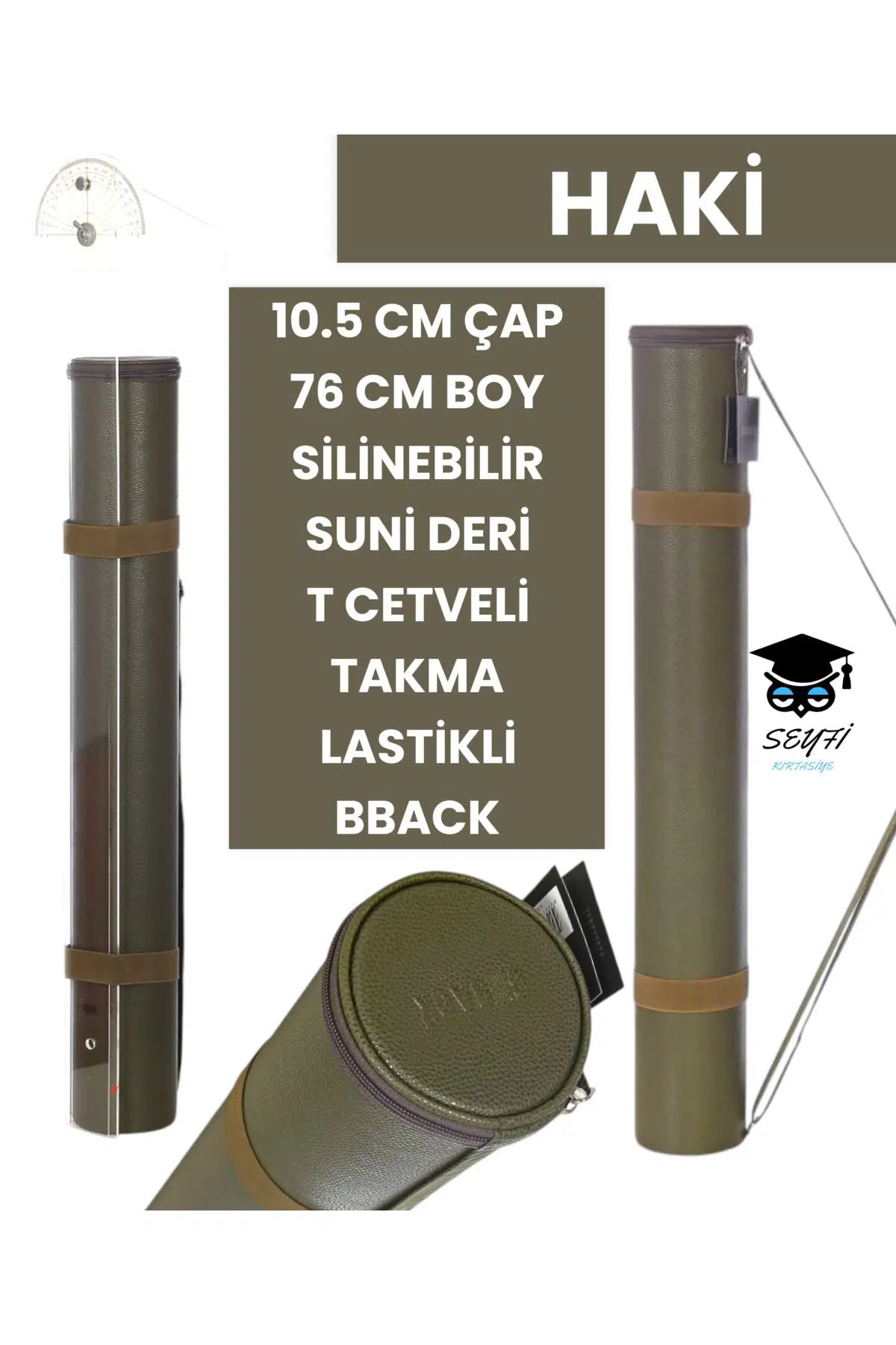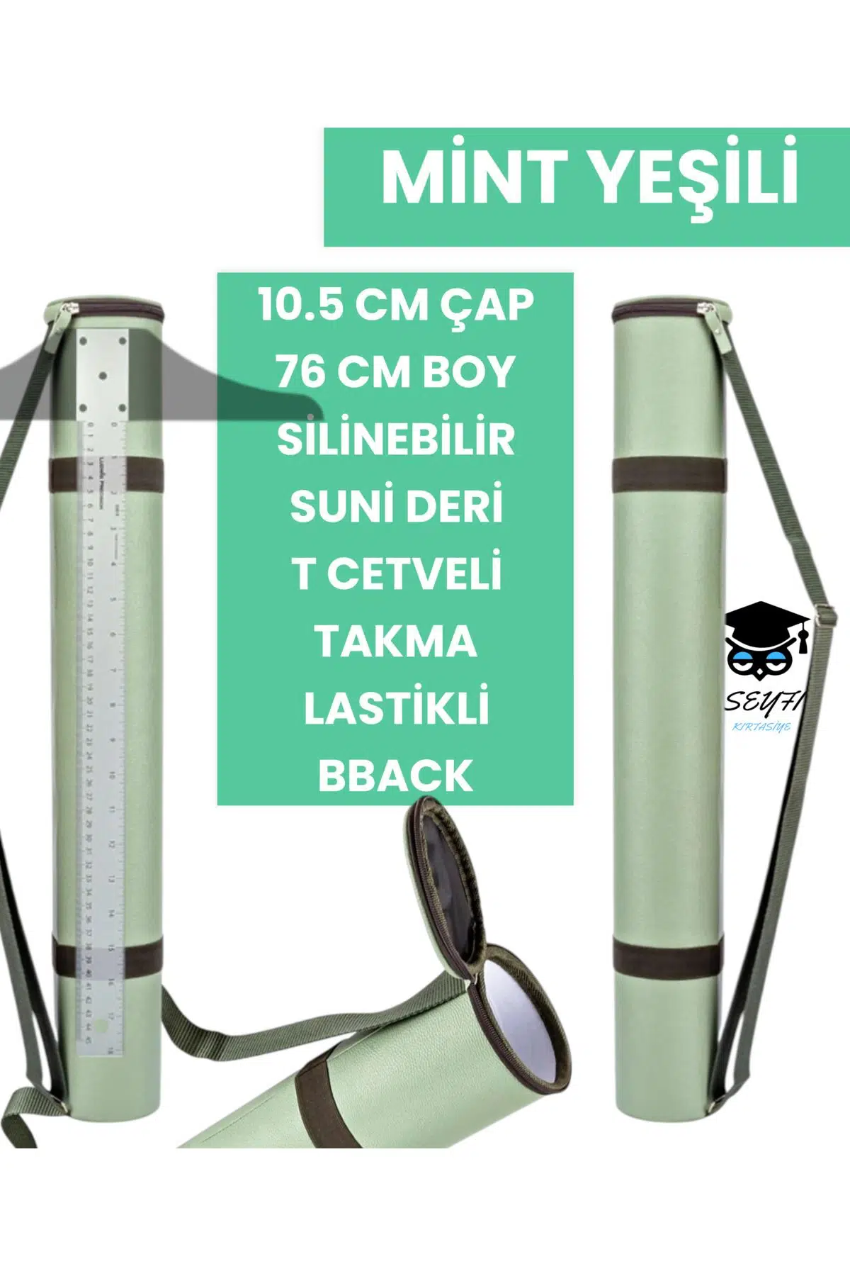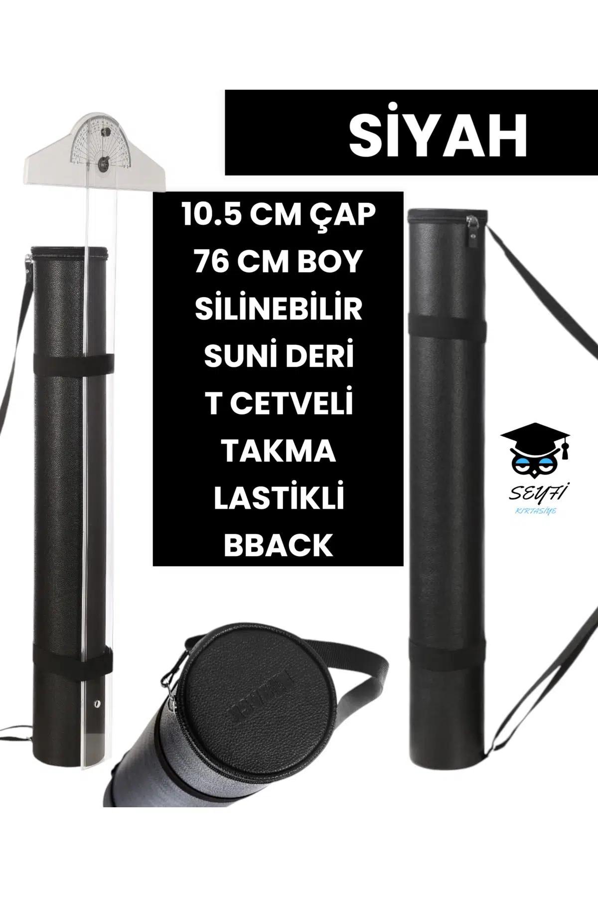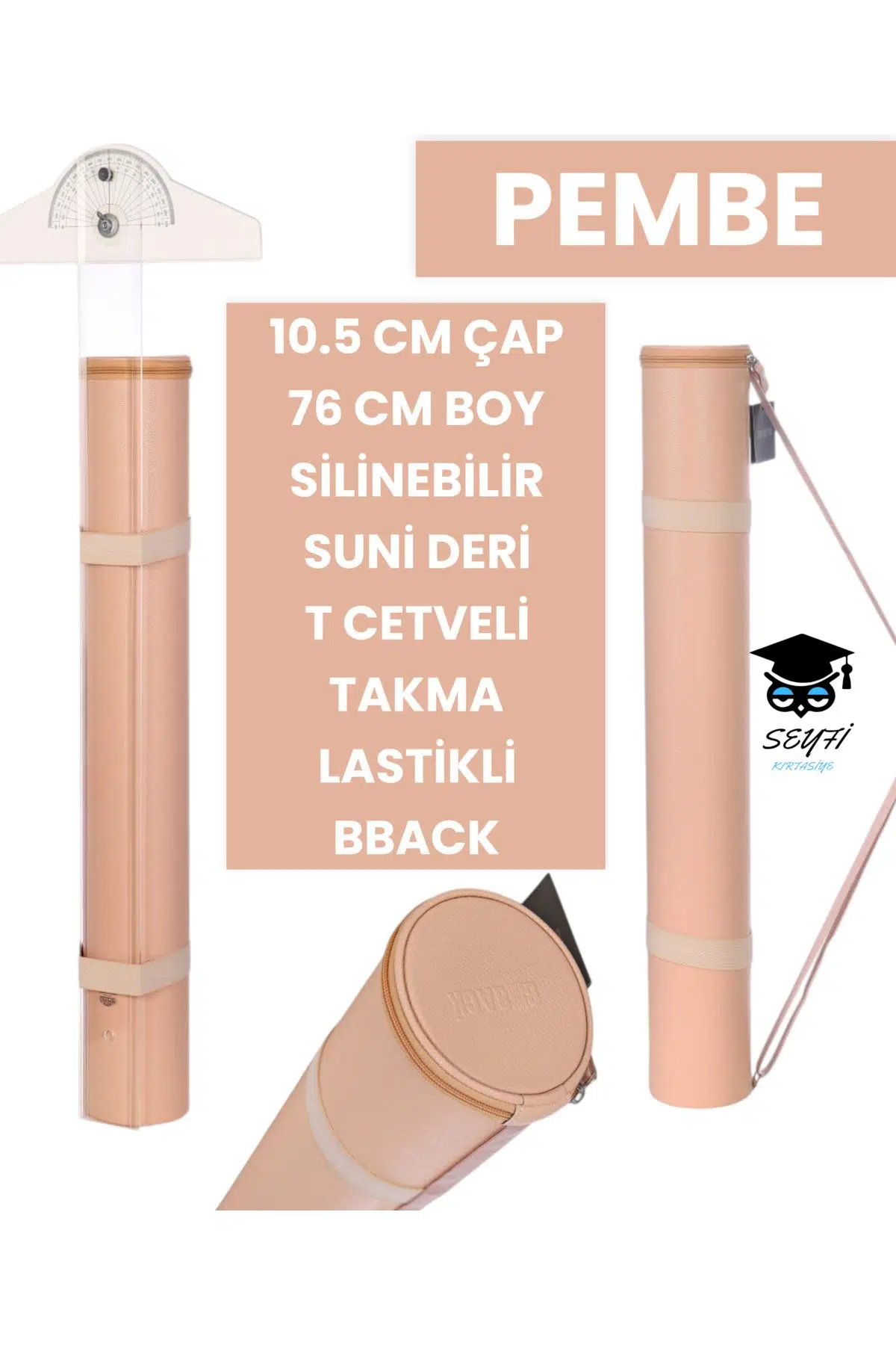 PROJE TÜPÜ BAZUKA 10.5 CM ÇAP 76 CM BOY SİLİNEBİLİR SUNİ DERİ T CETVELİ TAKMA LASTİKLİ BBACK