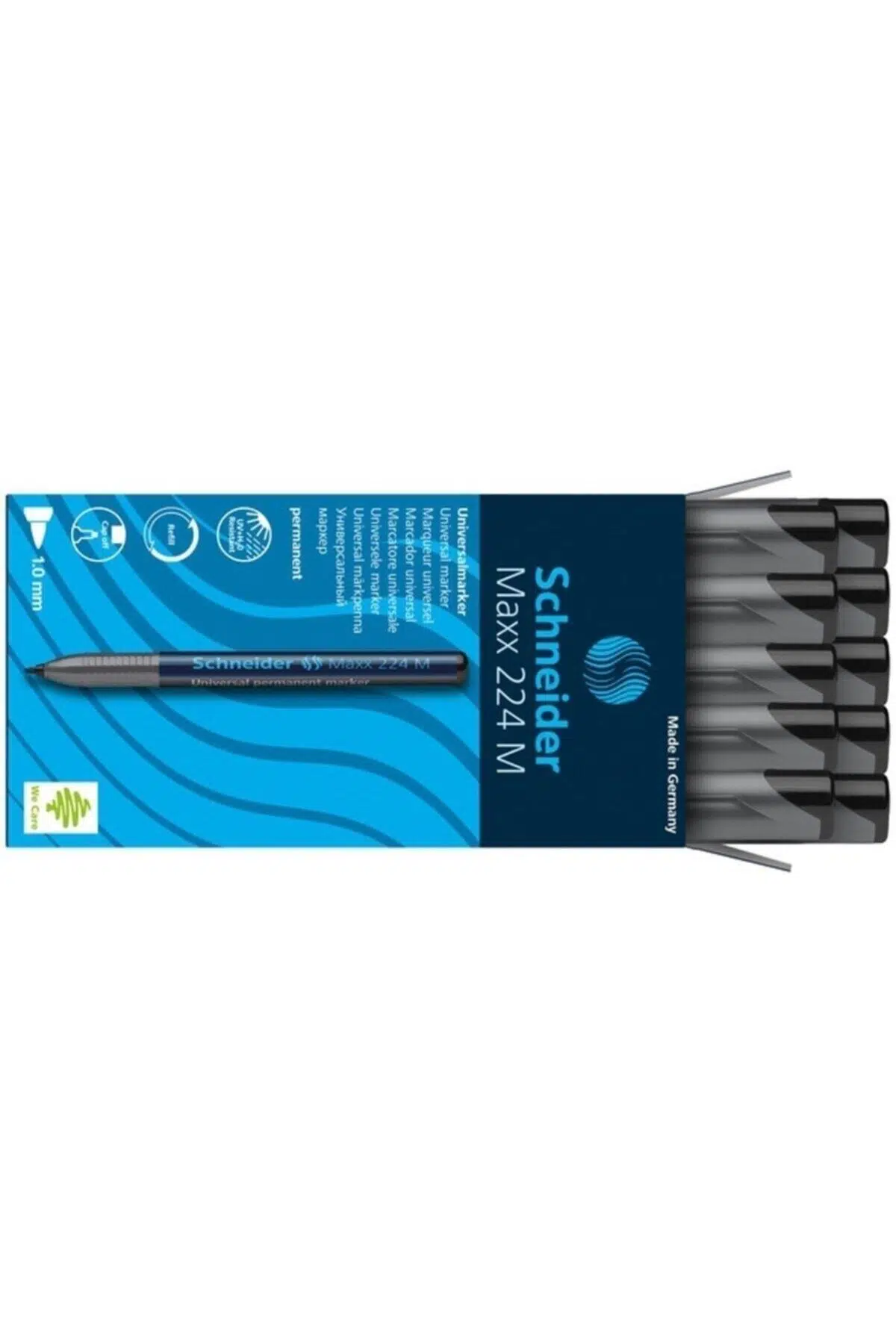 - Schneider Maxx 224 M Siyah Permanent Kalem, kaliteli malzemesiyle uzun süreli kullanım sunar.; - 10'lu kutu seti sayesinde ihtiyacınız olan her an yanınızda taşıyabilirsiniz.; - Menşei Türkiye'den gelen bu kalem, yerel üretim avantajıyla ekonomik bir seçenek oluşturur.; - Web renk kodu ile siyah rengin canlılığını koruyarak yazılarınızda profesyonel bir görünüm sağlar.