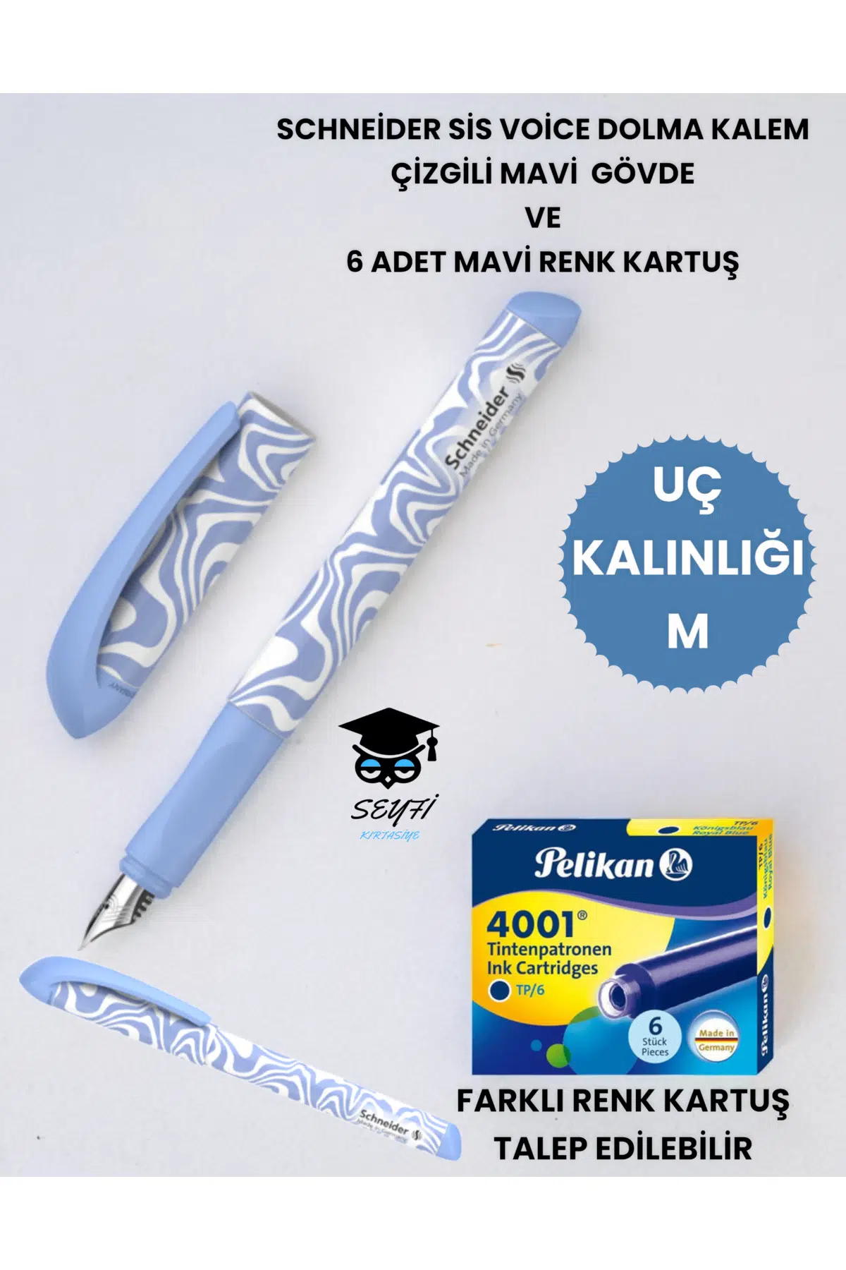 SCHNEİDER VOİCE DOLMA KALEMİ M UÇ VE 6 ADET DOLMA KALEM KARTUŞU YAZI KALINLIĞI M
