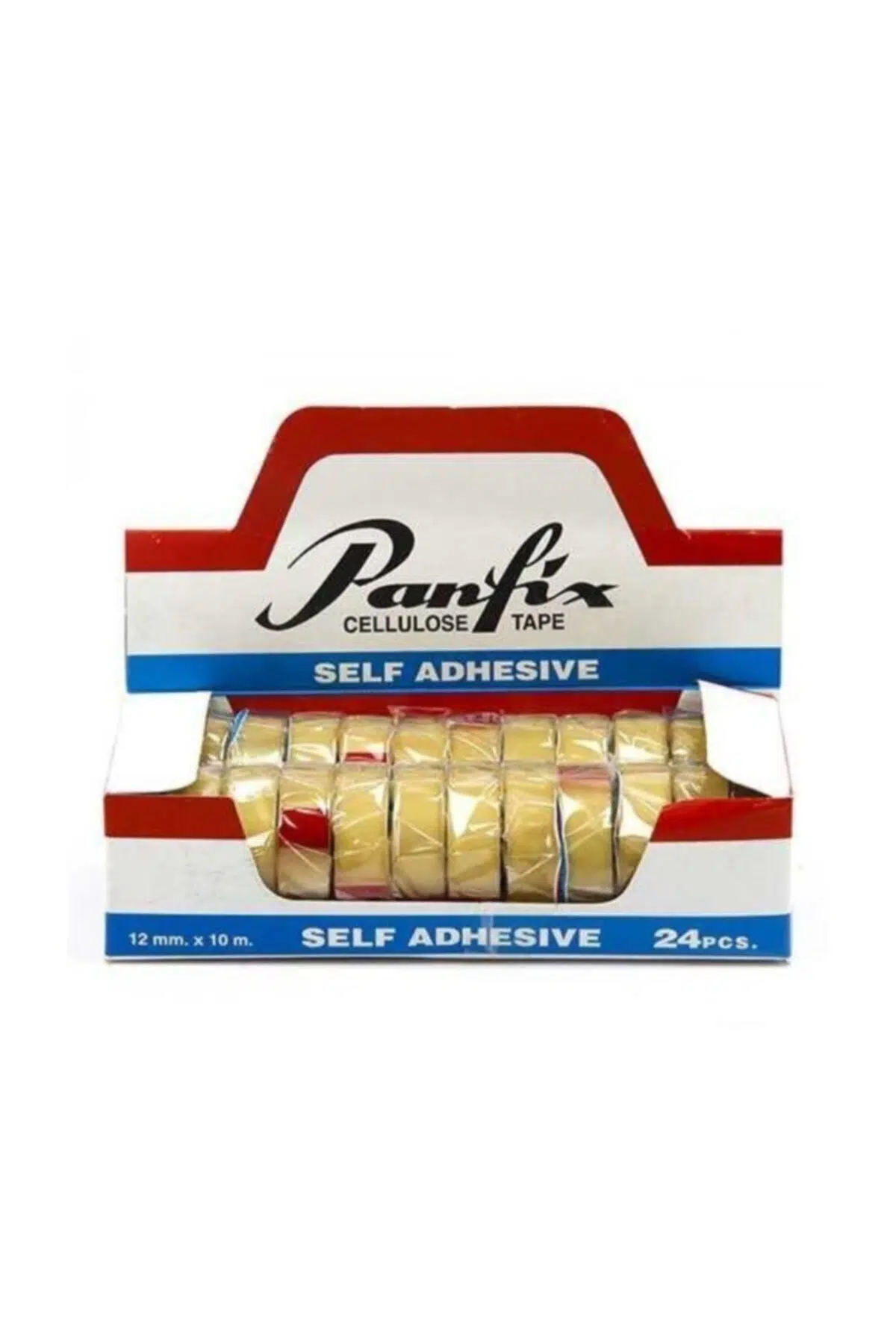 Panfix Selefon Bant 12x10m (24 Lü Paket) Panfix 12 X 10 İnce Şeffaf Bant 24'lü ·Kendinden Yapışkanlı Gerçek Selofan Bantlar ·Bant ile mukavva göbek arasında sünger tabaka vardır ·Isı değişikliklerinde göbek kısmının teleskobik şekilde dışarıya fırlamasını engeller ·Bu özellik yalnız Panfix bantlarda mevcuttur.; Satış esnasında 33 m.; ve 66m.; bantların teneke kutuları ürünü dış etkenlerden korur ·Yüksek ısılarda dahi, bantlar teleskobik şekil almaz