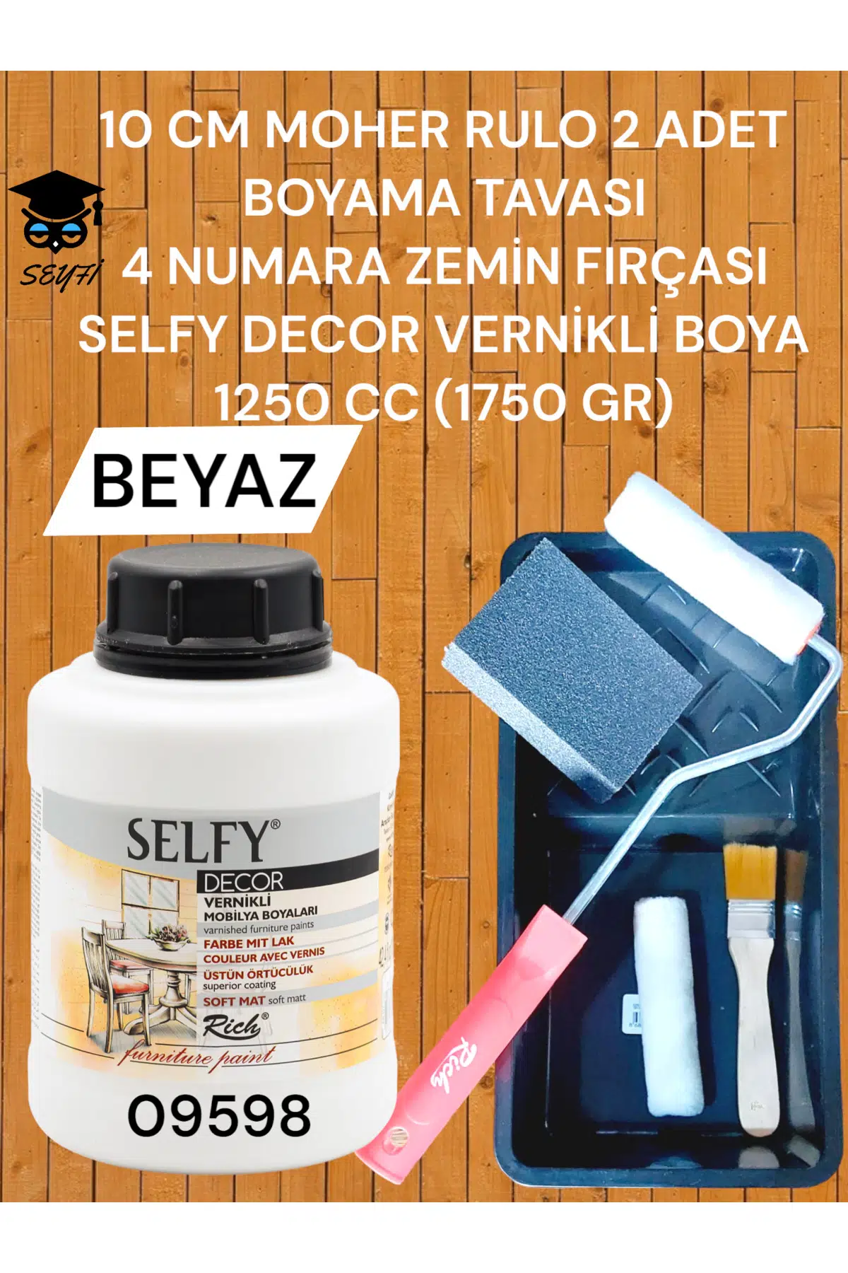 Selfy Decor 1250 Cc (1750 Gr) Akrilik Kendinden Vernikli Dolap Boyama Seti rulo fırça tava zımpara