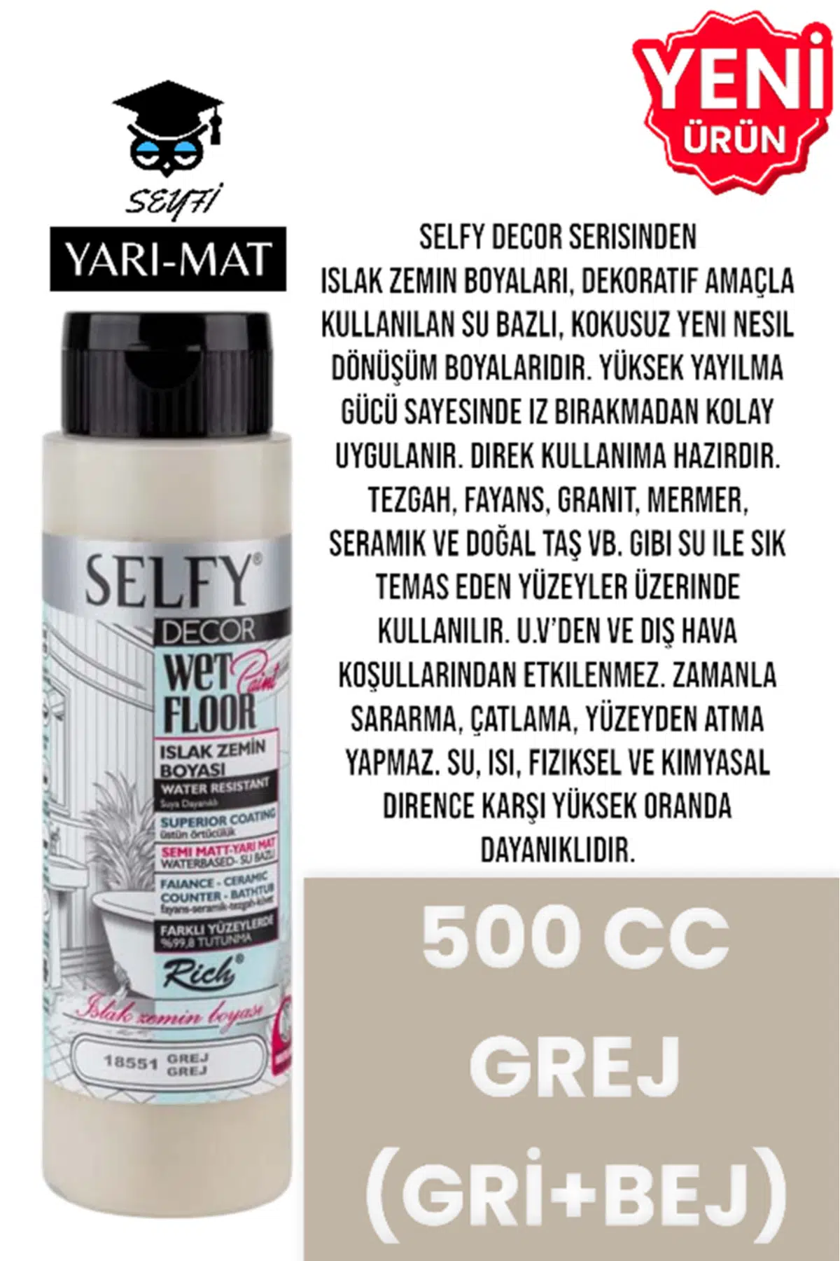 SELFY DECOR ISLAK ZEMİN BOYASI 500 CC MUTFAK TEZGAH FAYANS LAVABO KÜVET TUVALET ZEMİN HER YÜZEY İÇİN