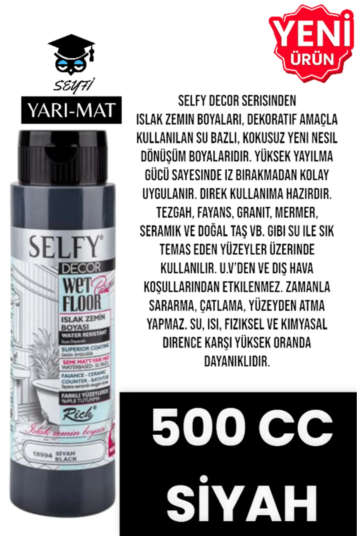 SELFY DECOR ISLAK ZEMİN BOYASI 500 CC MUTFAK TEZGAH FAYANS LAVABO KÜVET TUVALET ZEMİN HER YÜZEY İÇİN