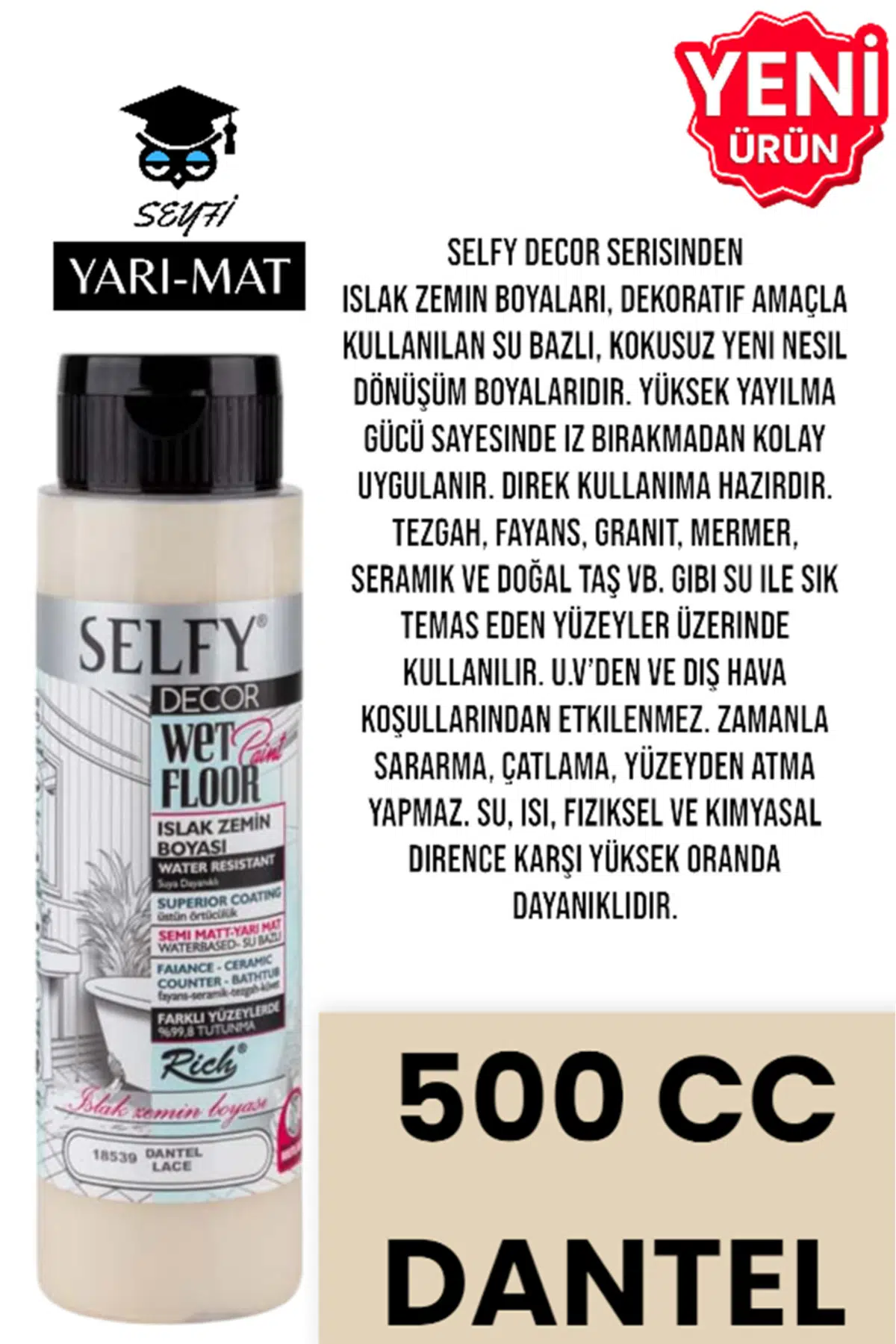 SELFY DECOR ISLAK ZEMİN BOYASI 500 CC MUTFAK TEZGAH FAYANS LAVABO KÜVET TUVALET ZEMİN HER YÜZEY İÇİN