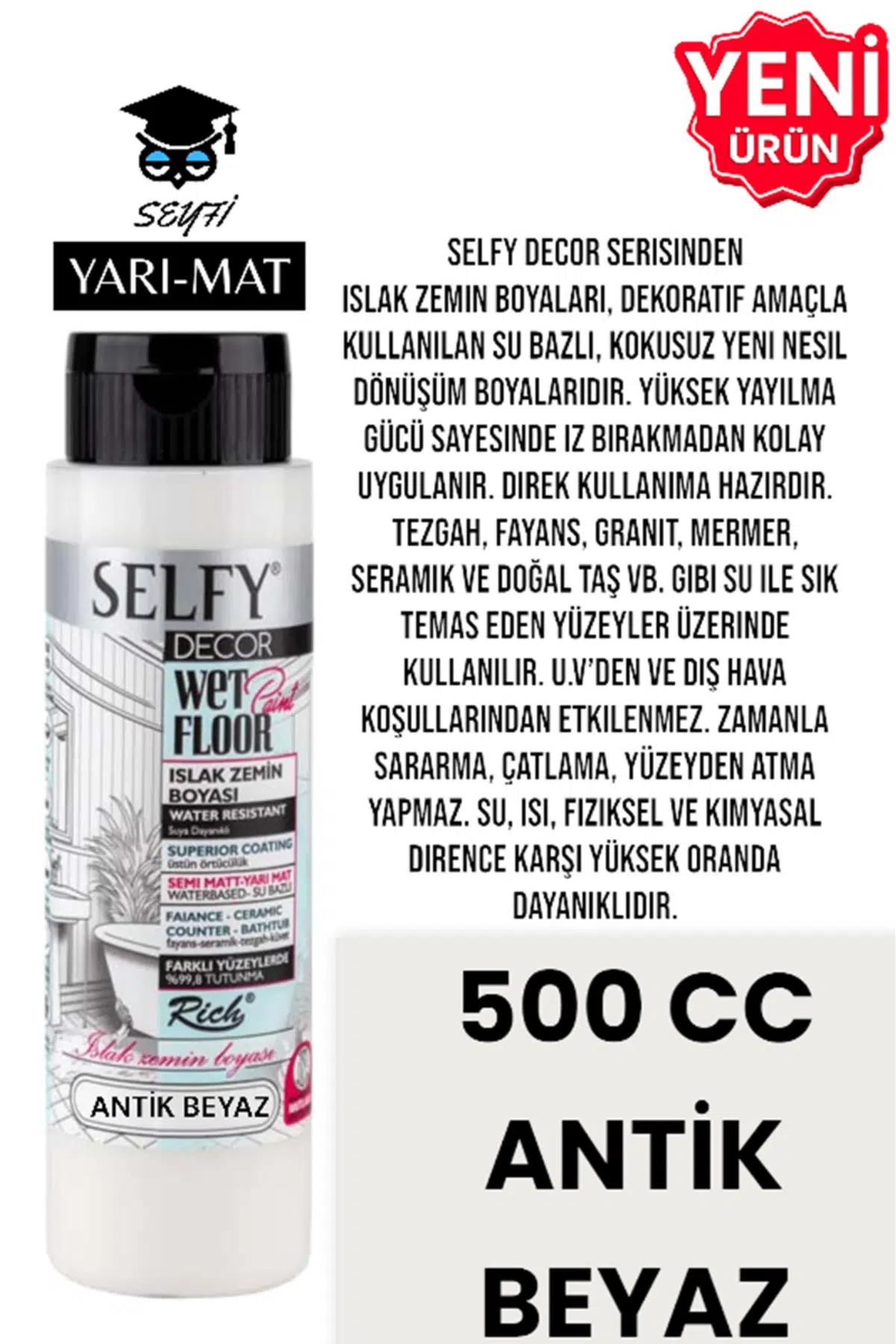 SELFY DECOR ISLAK ZEMİN BOYASI 500 CC MUTFAK TEZGAH FAYANS LAVABO KÜVET TUVALET ZEMİN HER YÜZEY İÇİN