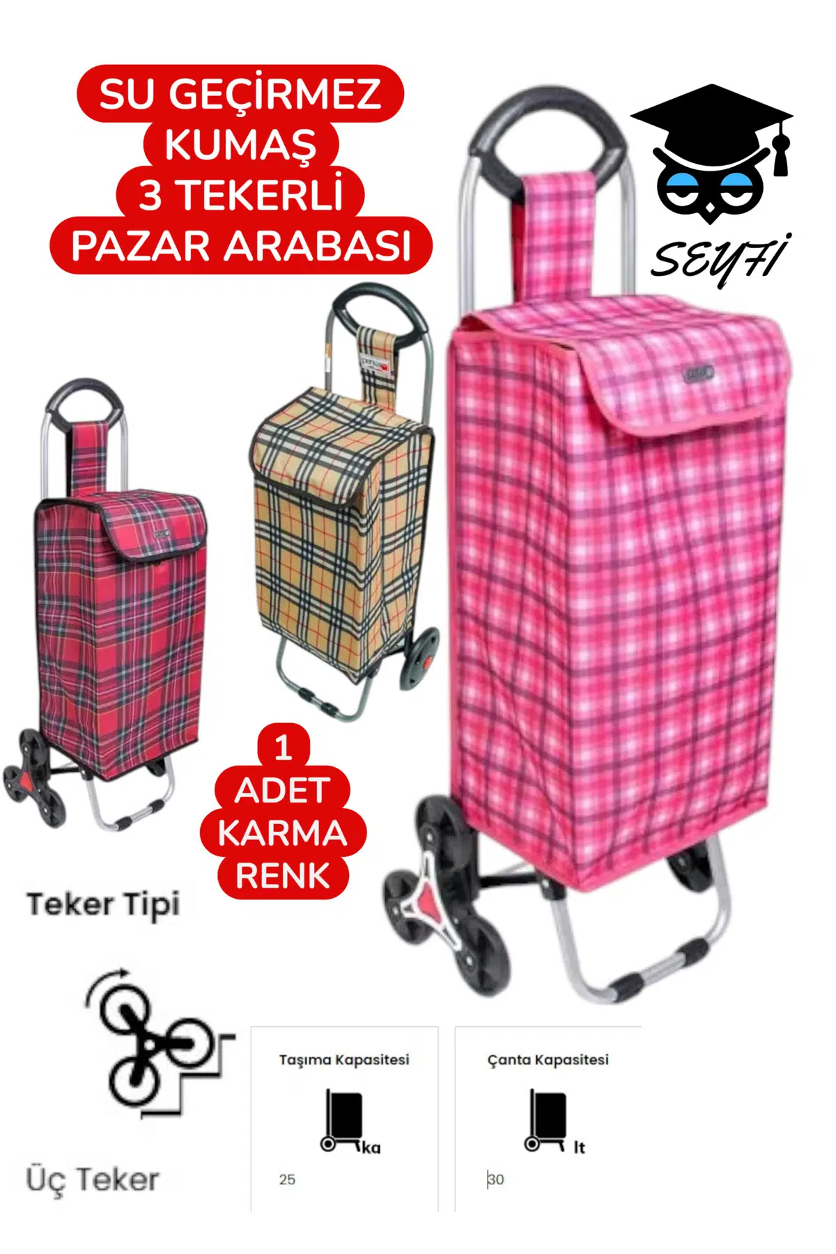 SU GEÇİRMEZ KUMAŞ 3 TEKERLİ PAZAR ARABASI MERDİVEN ÇIKABİLEN MODEL