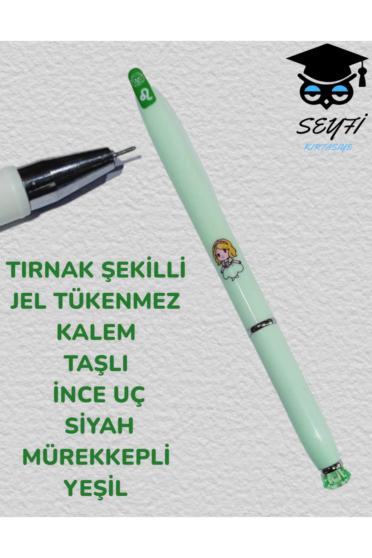 TIRNAK ŞEKİLLİ JEL TÜKENMEZ KALEM TAŞLI İNC UÇ SİYAH MÜREKKEPLİ